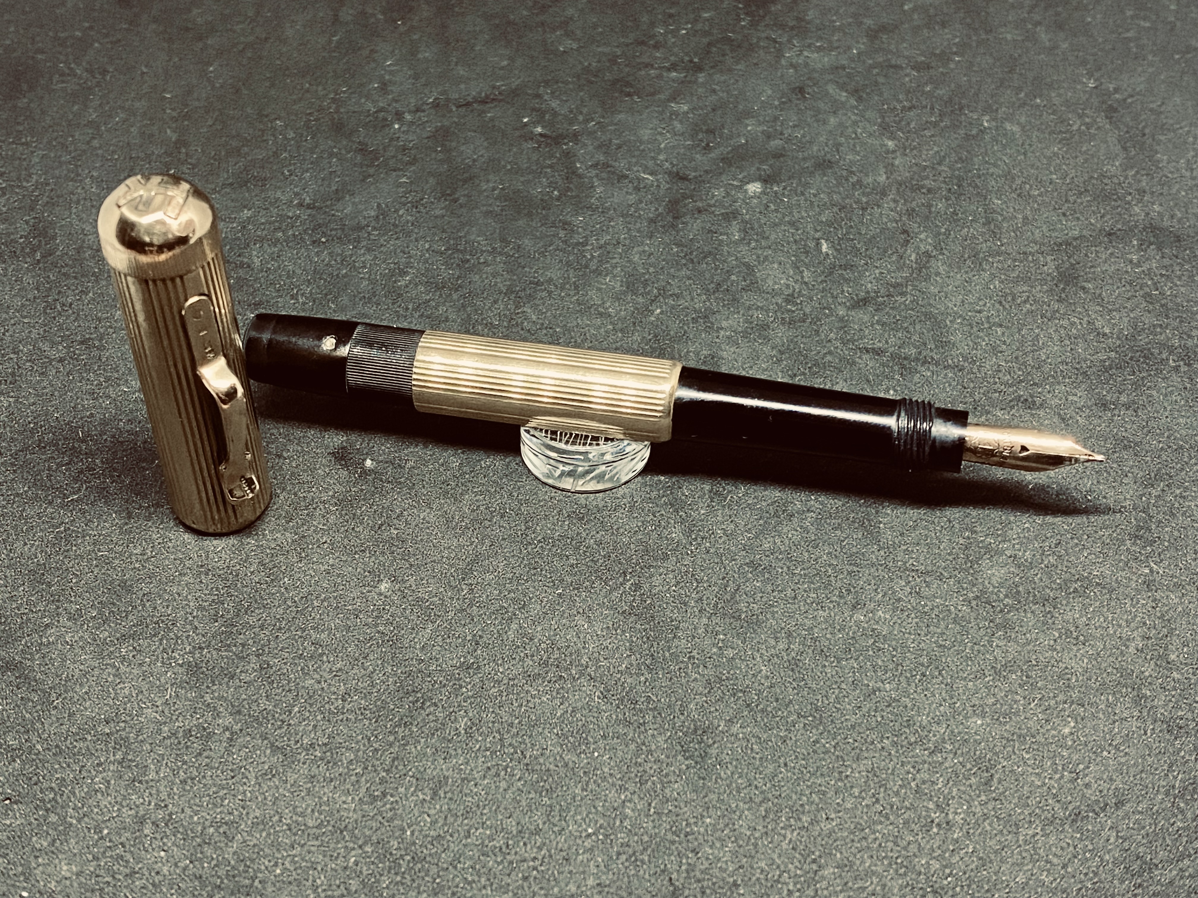 La penna purtroppo non versava in condizioni ottimali quando l’ho trovata, oltre al meccanismo Safety non funzionante, aveva anche un a punta del pennino spezzata in cima. La lunga attesa è stata dovuta proprio al tempo necessario per poterlo ripristinare, operazione eseguita a regola d’arte da un riparatore spagnolo a cui ho consegnato il pennino durante il Pen Show di Barcellona lo scorso Aprile.