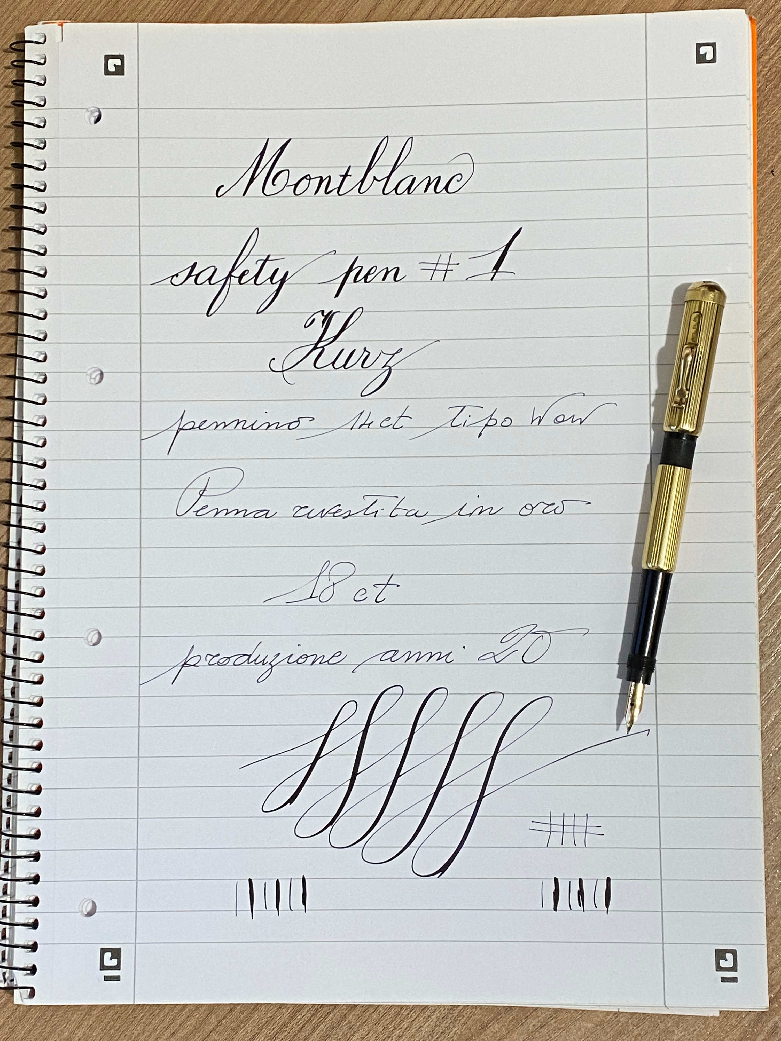 La prova di scrittura dimostra non solo la bravura del nibmeister, che l’ha magistralmente rimesso in sesto, ma le qualità di base, senza alcun compromesso, di questo pennino prodotto da Montbalnc negli anni 20; magari se ne facessero ancora di simili! Morbido, scorrevole, tratto consistente e preciso supportato da un flusso perfetto, insomma un pennino WOW senza se e senza ma. Eccolo in azione, il piacere di scrittura purtroppo non posso fotografarvelo :-)
