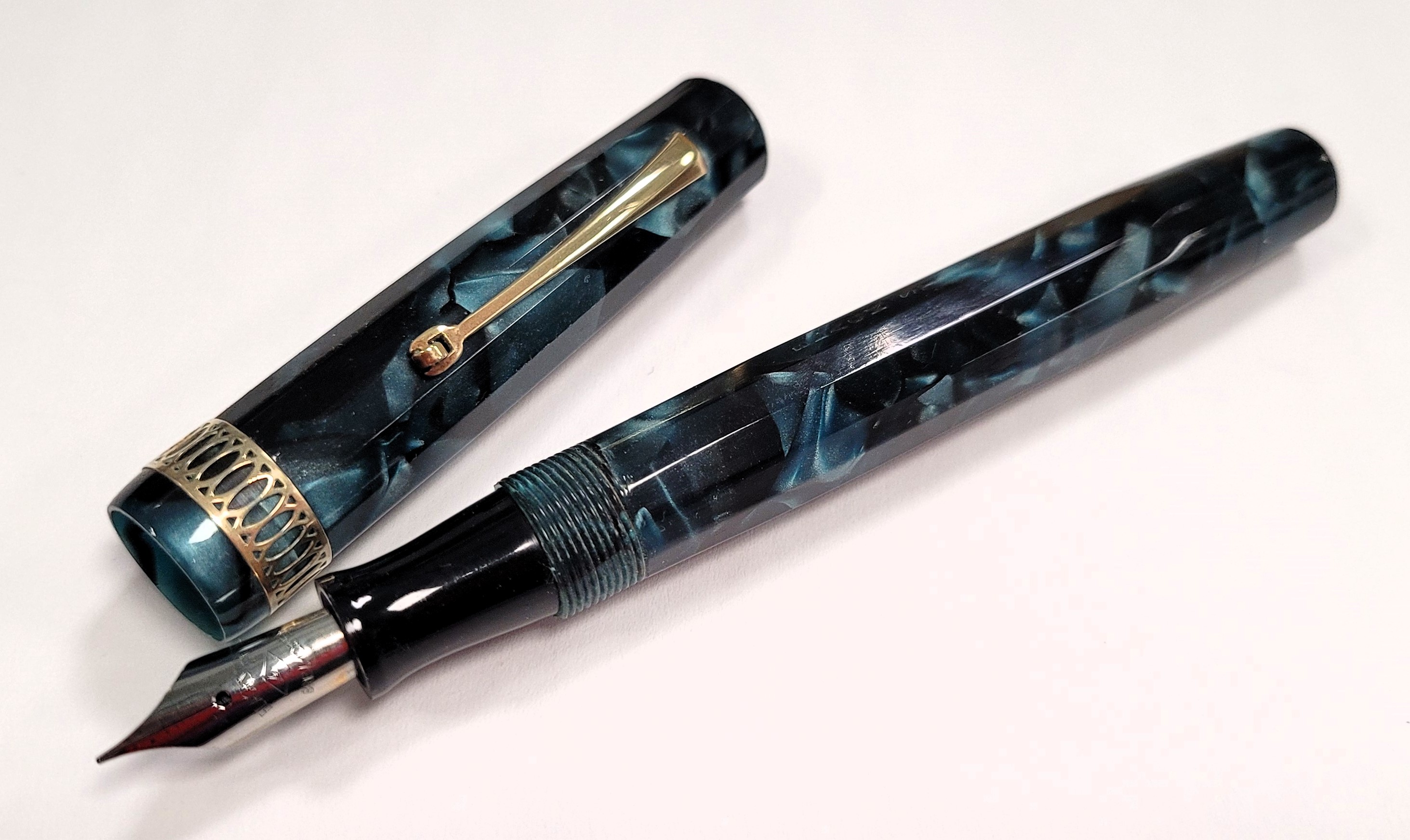 stilografica in celluloide sfaccettata credo degli anni '30 con un bel pennino flessibile, in acciaio.