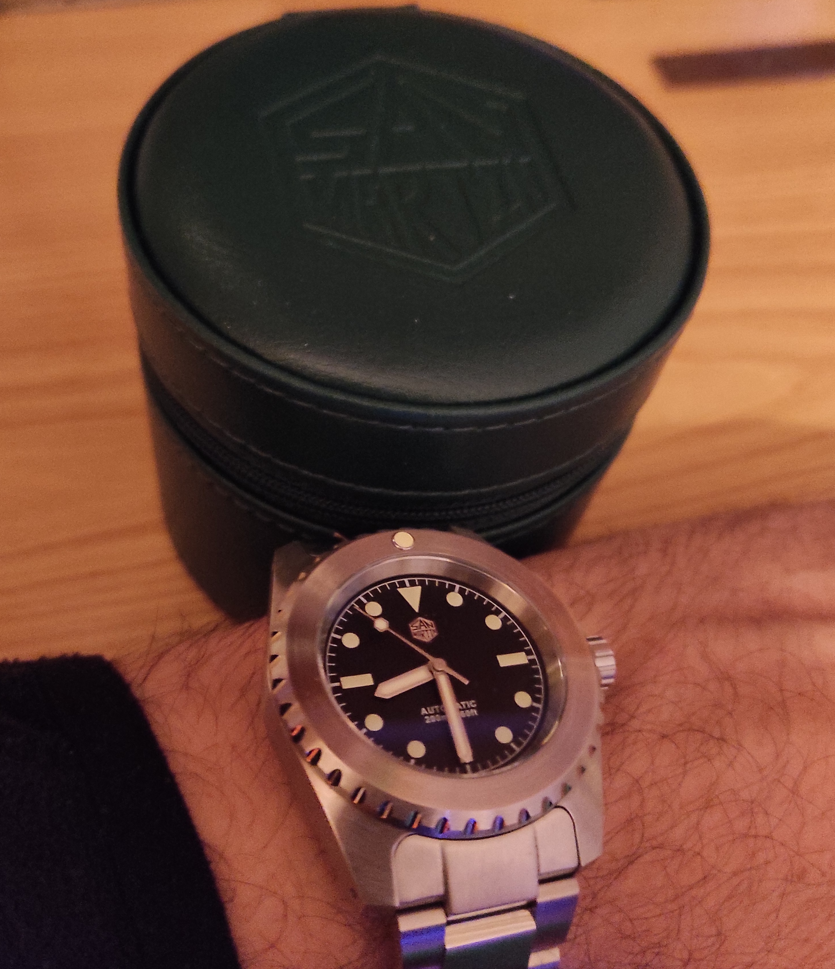 Chrisweb ha scritto: giovedì 28 novembre 2024, 20:36 San Martin (cinesone) "Retrodiver", 41mm, vetro zaffiro, ghiera in alluminio, 200 WR, con calibro automatico Miyota 8315 e ben 60 ore di ricarica.