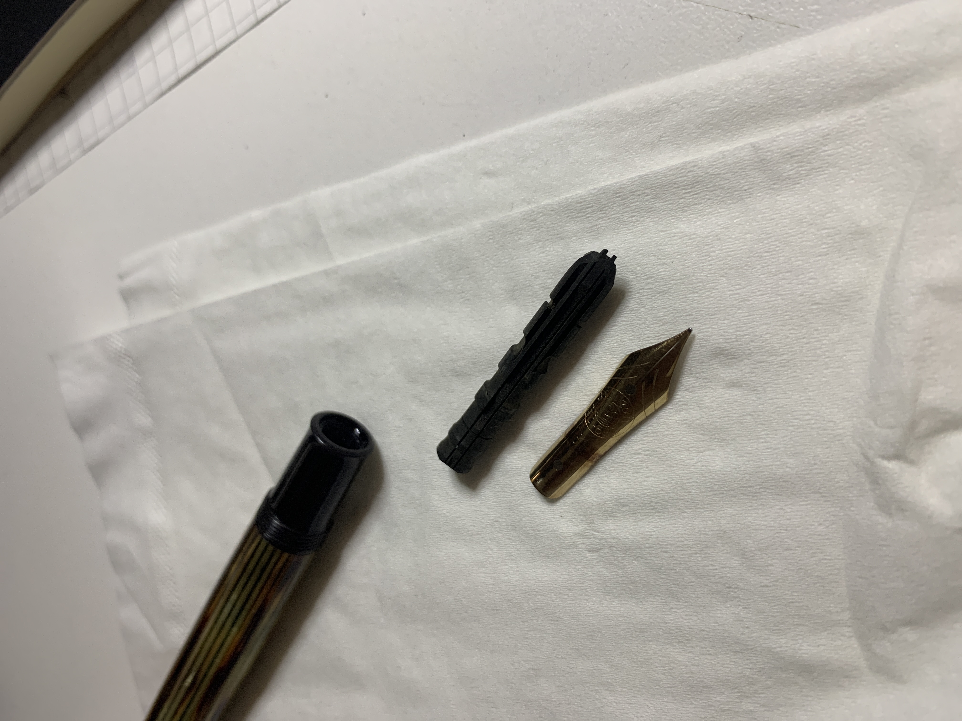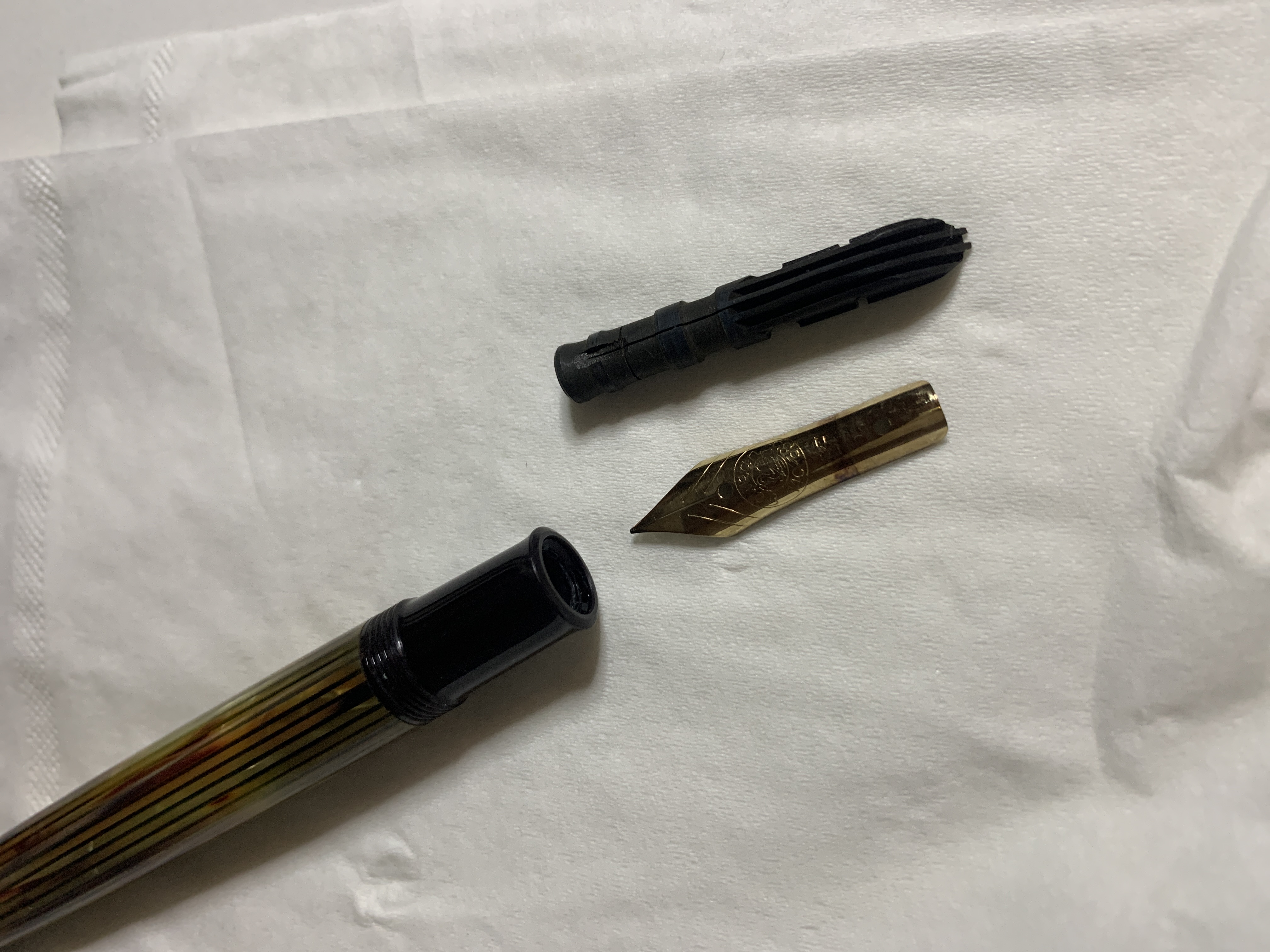Ho usato l'acqua per pulire il pennino, alimentatore e collarino prima di rimontare tutto. Ma prima di rimontare tutto ho asciugato i pezzi.