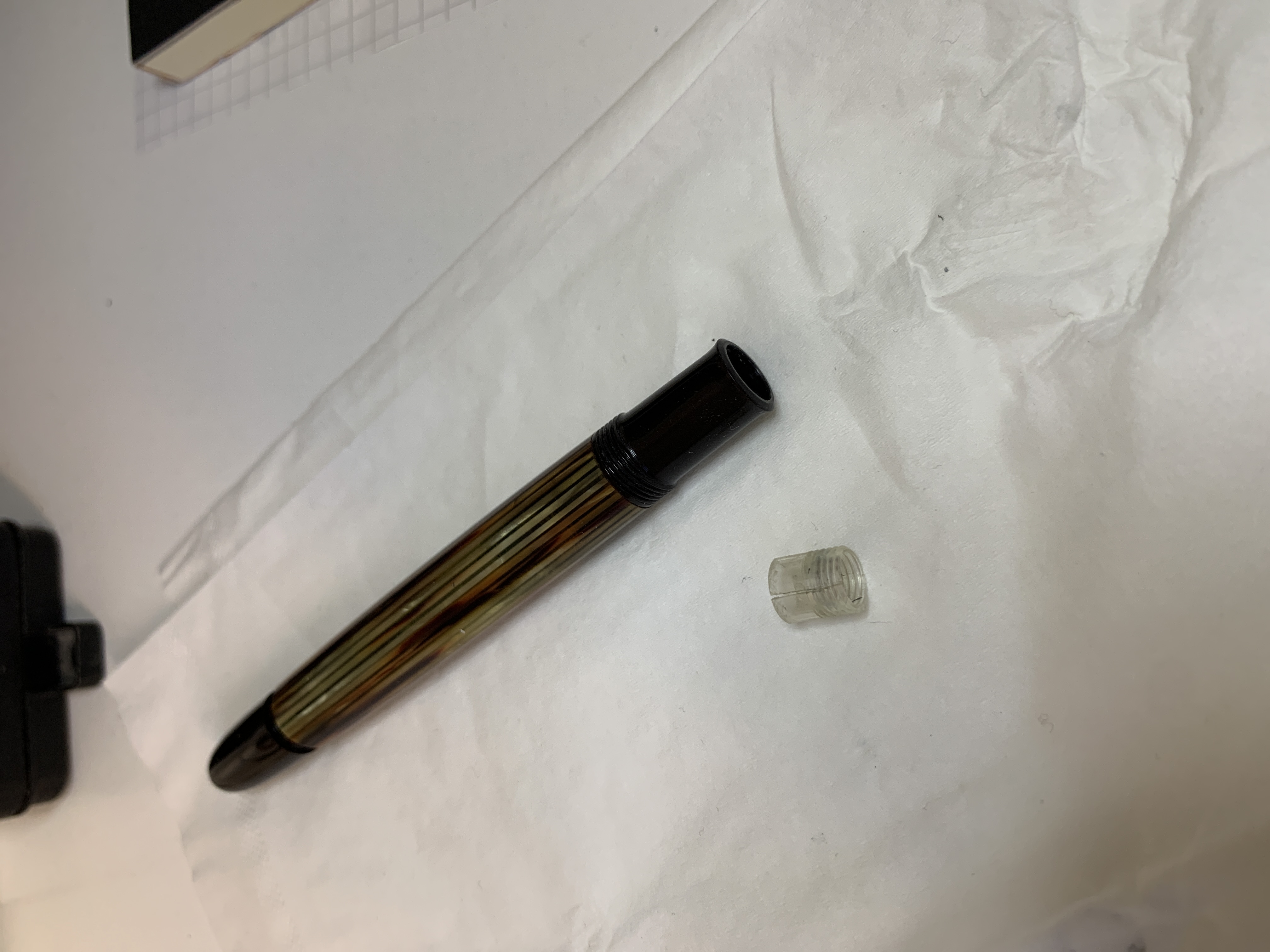 Hai provato a bagnare in acqua collare, alimentatore e pennino prima di assemblare il gruppo scrittura? Usa sempre un pezzo di camera d'aria o qualcosa che aiuta a far ben presa per tenere alimentatore e pennino tra le dita.