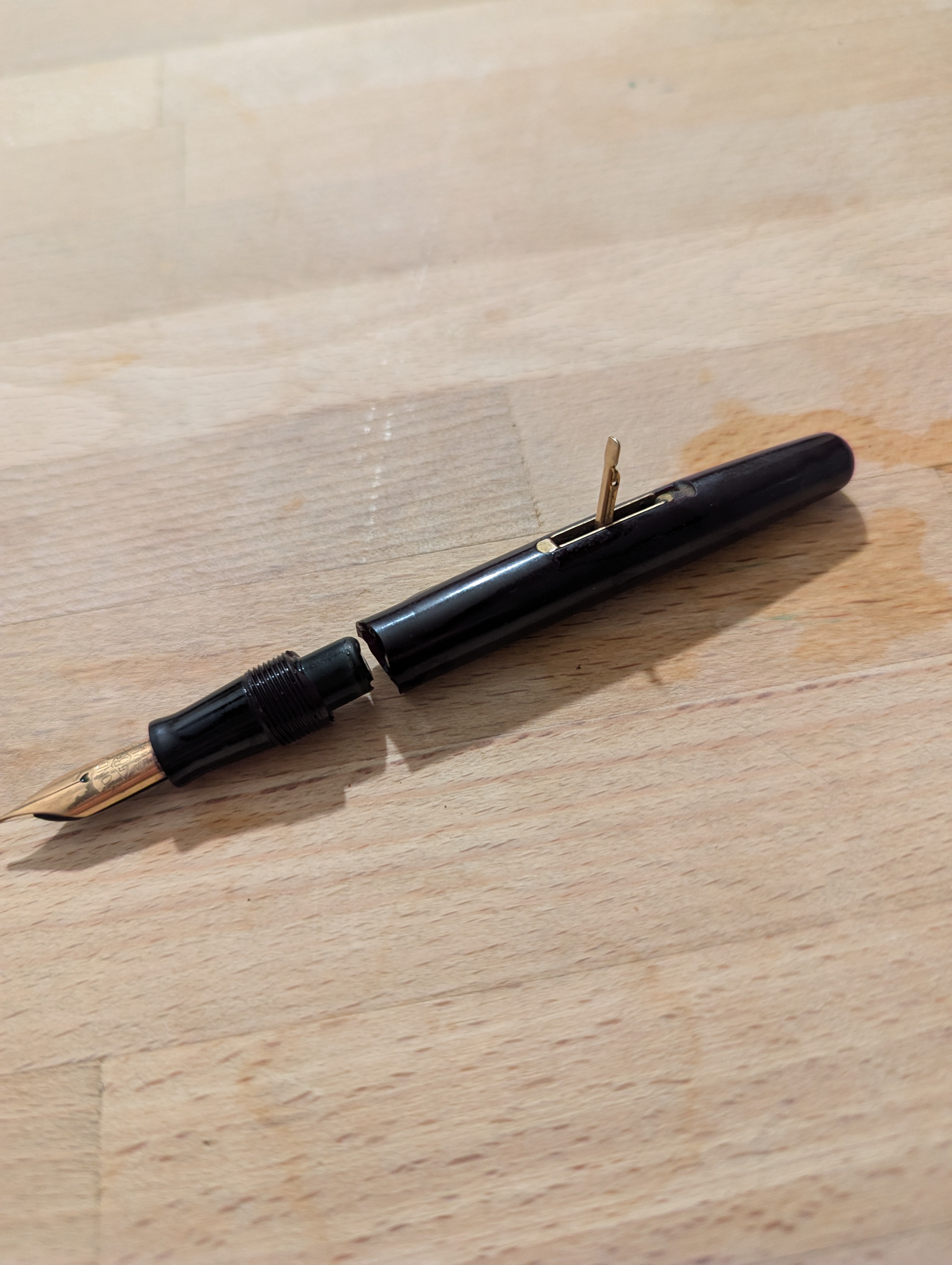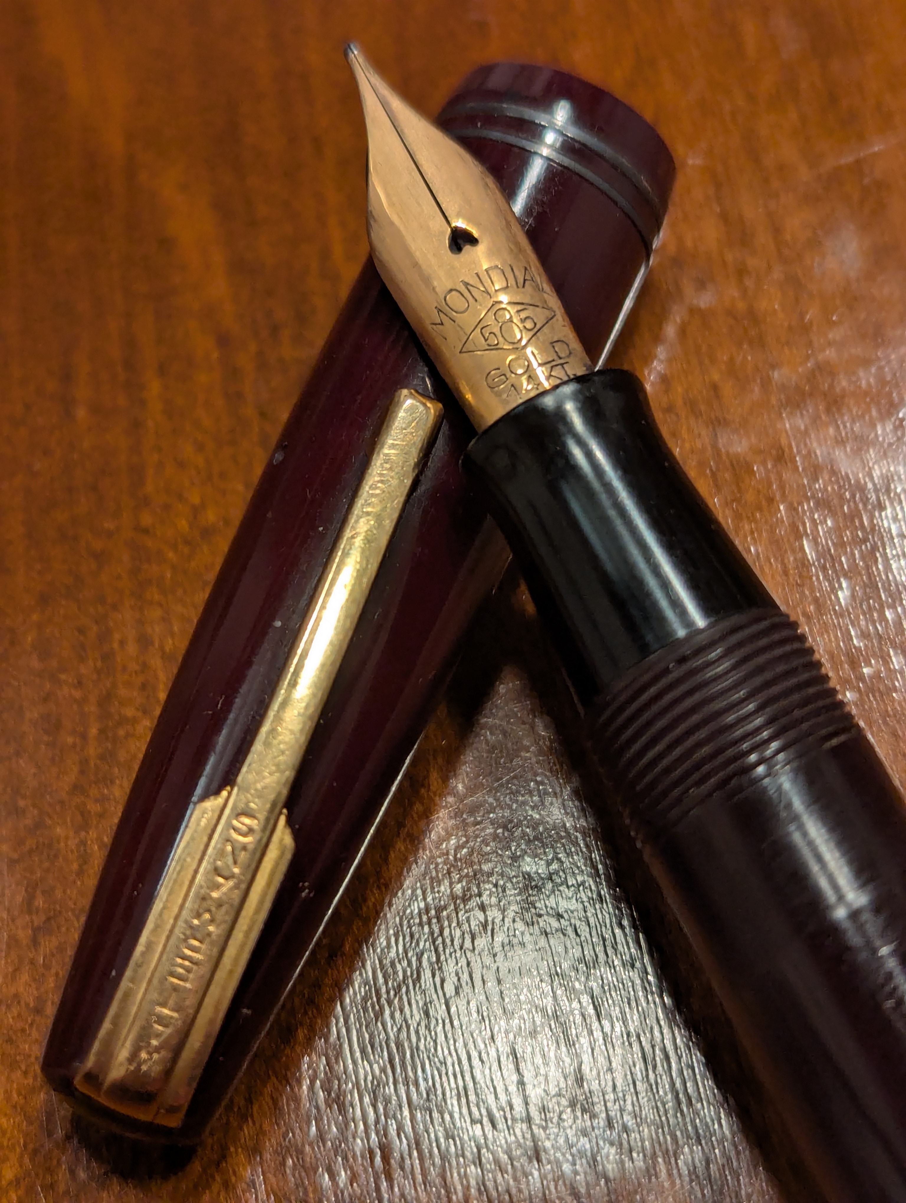 Questa penna è identica alla Commando ma non ne riporta la scritta: che sia stata prodotta dopo la guerra (dalla splendida recensione di Musicus non ricavo delucidazioni).Inoltre ha un pennino Mondial 14 k: sostituito? La levetta fatica a muoversi e non ho il coraggio di affrontare lo smontaggio del corpo col calore: trovo qualche indicazione sul wiki? ancora meglio accetto consigli dai tecnici..