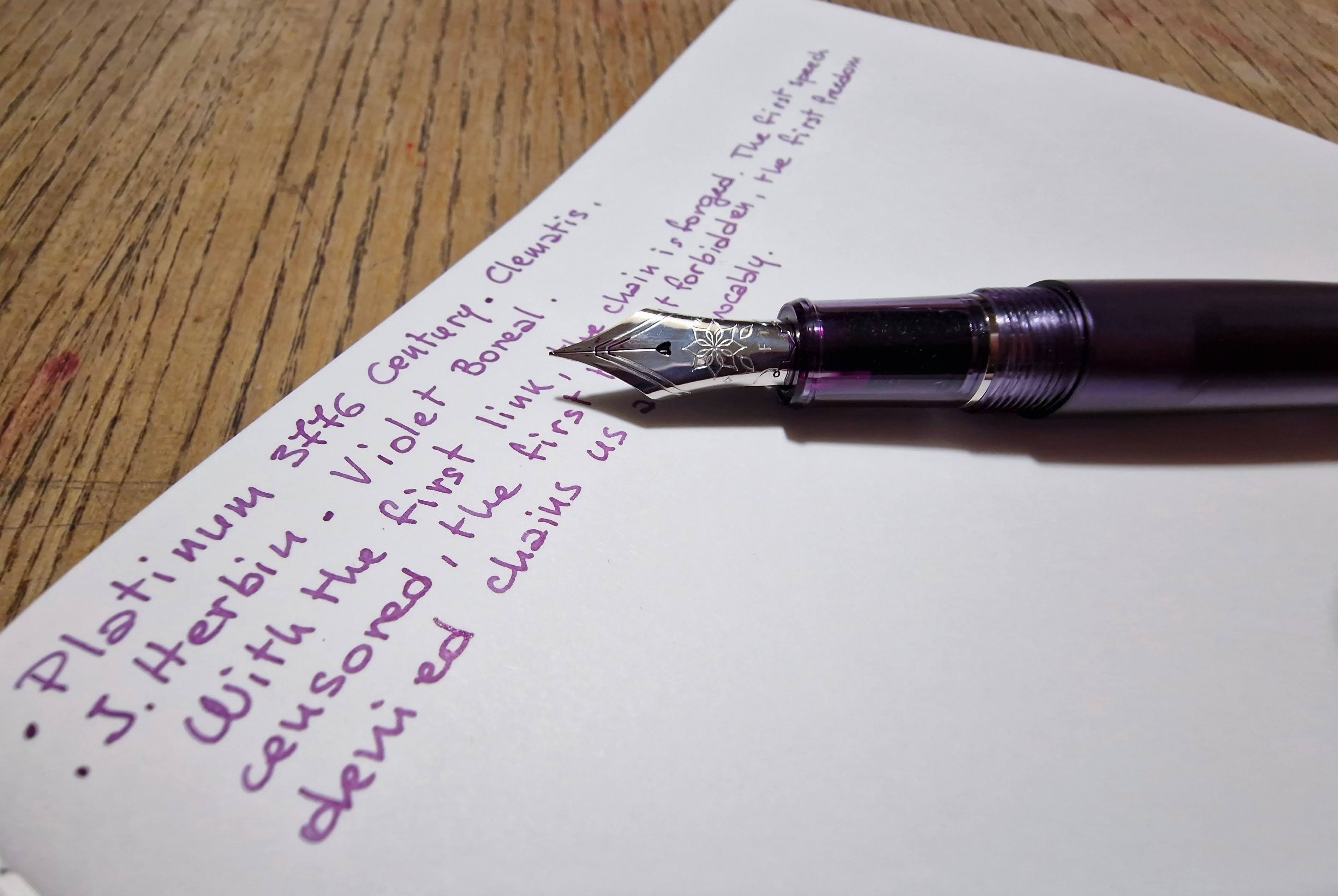 Il pennino F ha (senza sorprese) maggiore scorrevolezza rispetto all'EF ma resta un sottile feedback, nella quantità perfetta per non far sembrare di star scrivendo con una saponetta. Anche in un tratto non ideale per me, la 3776 Century si conferma essere il mio top in comfort, fattore di forma, estetica ed esperienza di scrittura.