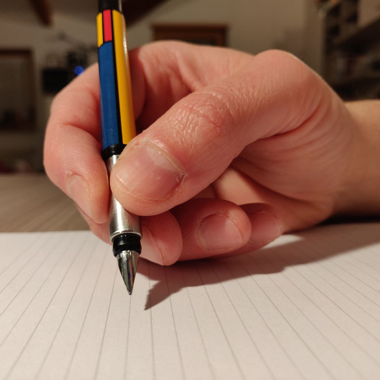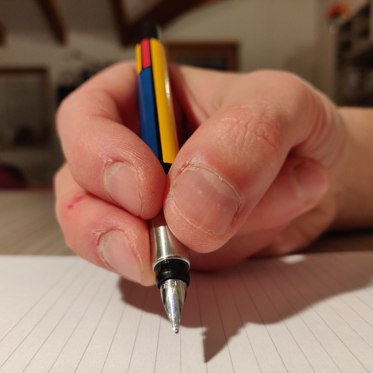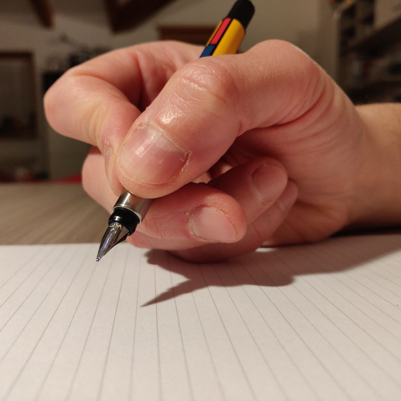 Grazie al forum e ad approfondimenti vari, tra cui segnalo questo sito ricco di fotografie e spiegazioni [1], ho scoperto di impugnare non correttametne la penna, contro le mie più profonde convinzioni. E sono tremendamente demoralizzato da questa scoperta!