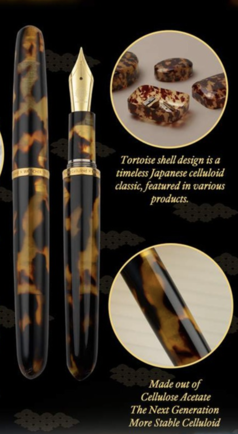 La "Koi" e la tortoise ( le prime due) sembra lo stesso materiale delle platinum in celluloide, gli altri due sono molto interessanti, ma un po' costoso per me