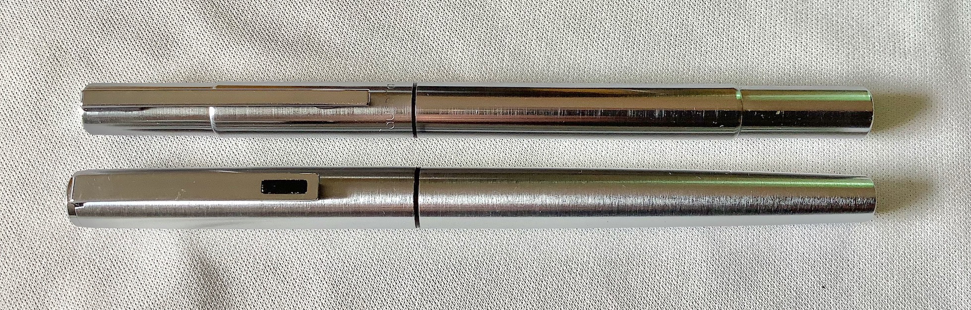 L’Aurora con la sua Auretta è forse una tra le prime a proporre questo design (quasi certamente traendo ispirazione dalle linee della Hastil), insieme alla Parker con la sua 25, Waterman Graduate, e sul finire del ’70 le Pelikan Signum di fascia bassa (P505 a esempio) per citarne alcune.