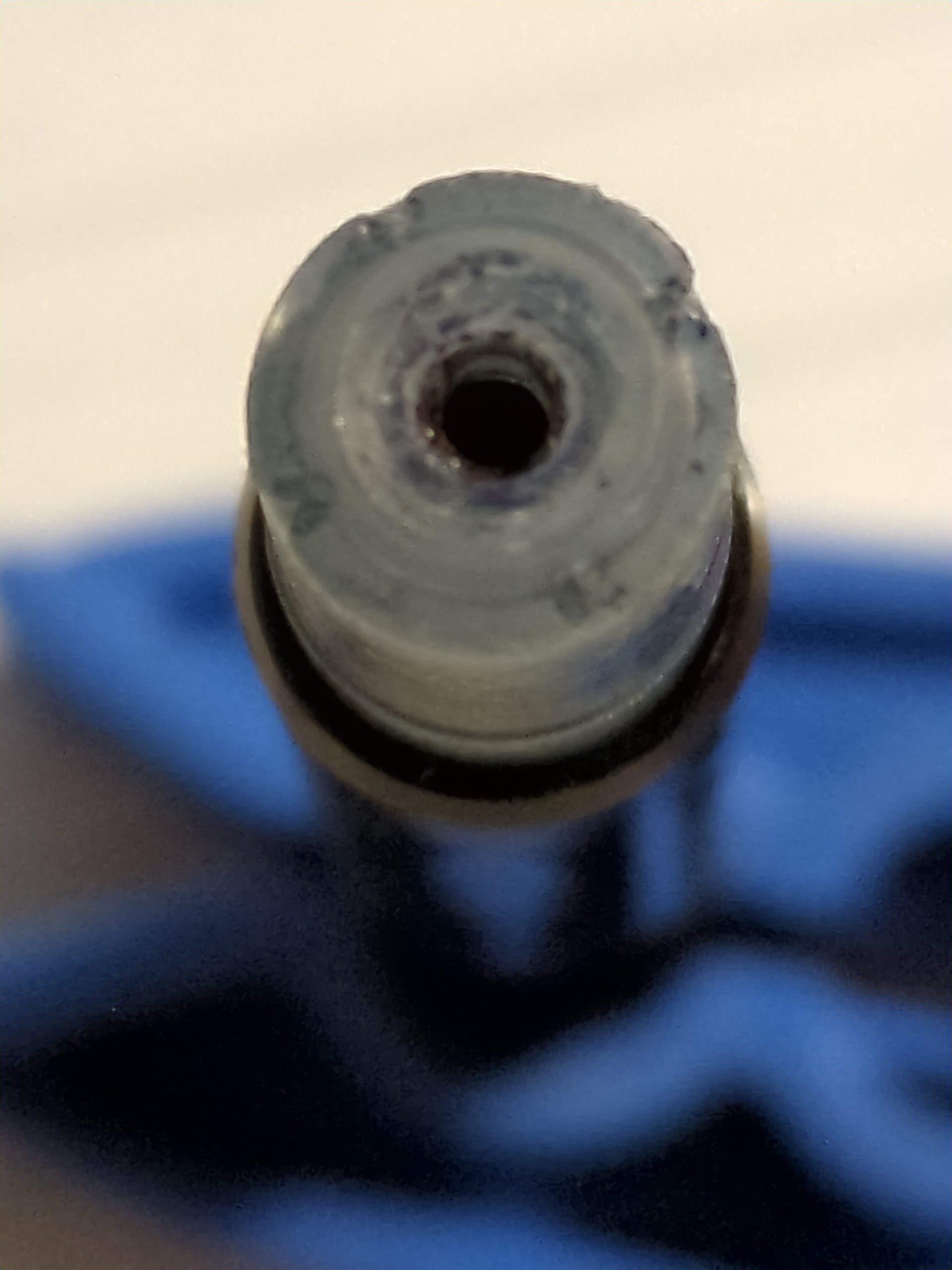 A questo punto - dopo varie inutili ricerche per trovare qualcosa, tra i converter e le cartucce che mi ritrovo avere nei cassetti, che si potesse utilizzare abbinandolo al terminale di attacco - mi sono ricordato dell'esistenza dell'adattatore Platinum: un piccolo accessorio (facilmente reperibile e dal costo molto basso) utilizzabile per adattare l'attacco delle stilografiche Platinum al formato "standard" (Pelikan) di cartucce e converter.
