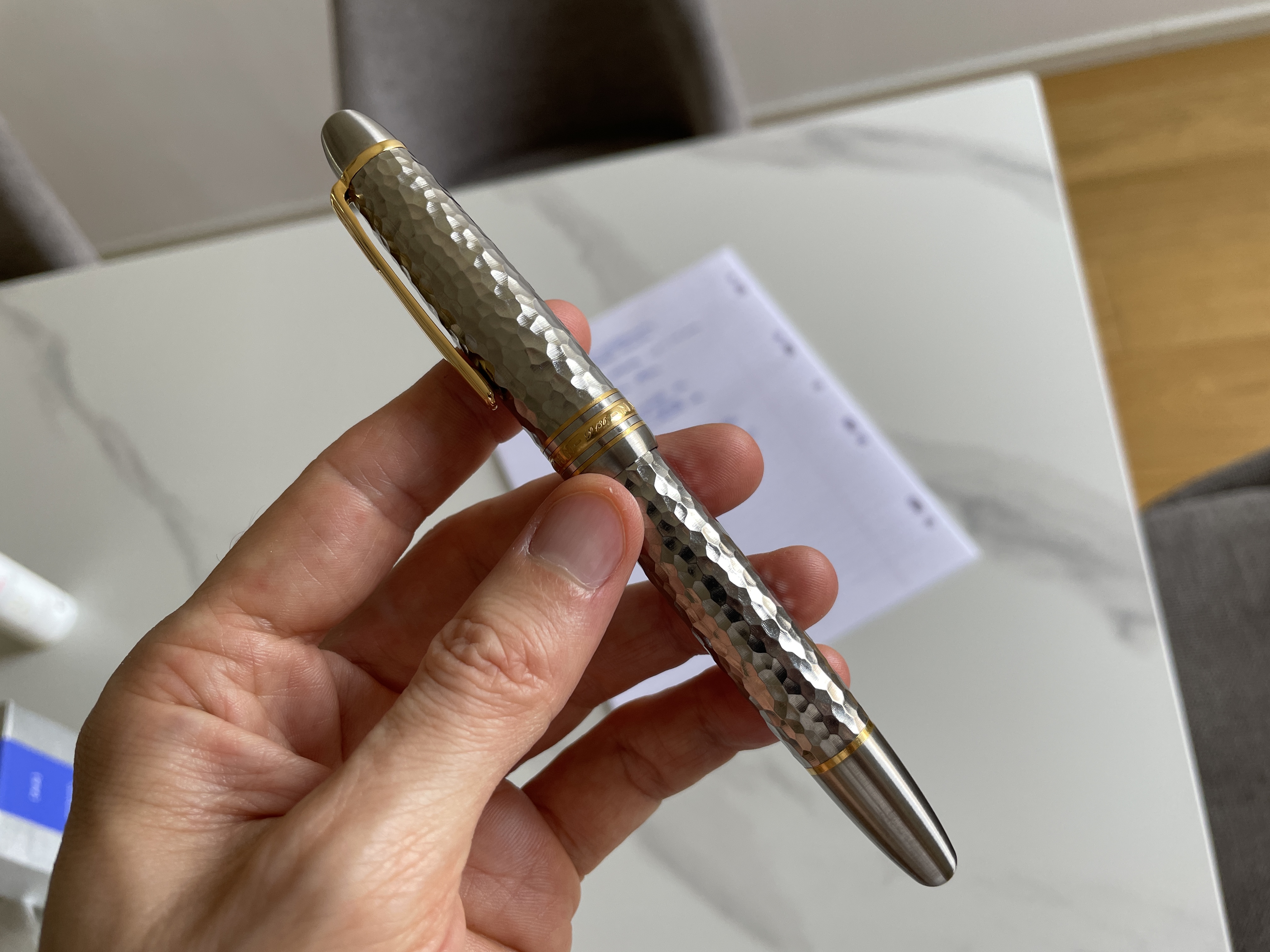 I gusti non si discutono, ma il titanio martellato mancava pure a me, un materiale cosi tecnologico che vorrebbe forme lineari e moderne trattato come il ferro battuto, ottone e rame, non riesco proprio a capirlo e con pure l'aggravante della copia Montblanc...