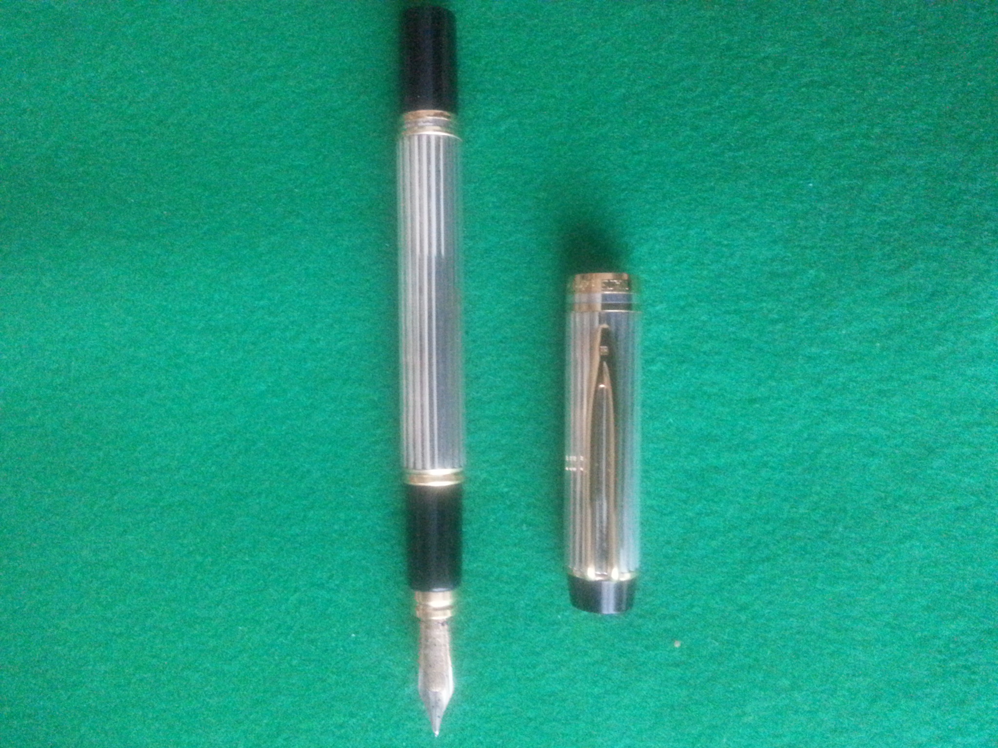 La stilografica è stupenda (sebbene sia a cartuccia converter). Il pennino fine non è molleggiato, ma neanche totalmente chiodo. Ricorda molto il comportando dei pennini pelikan per m800 dei primi anni novanta. Il fine è un vero fine europeo (come li sapeva fare pelikan) quindi non ha niente in comune con i pennini fini moderni (montblanc, pelikan o Parker /waterman). La penna è pesante siamo sulla cinquantina di grammi di cui 13 per il solo cappuccio.