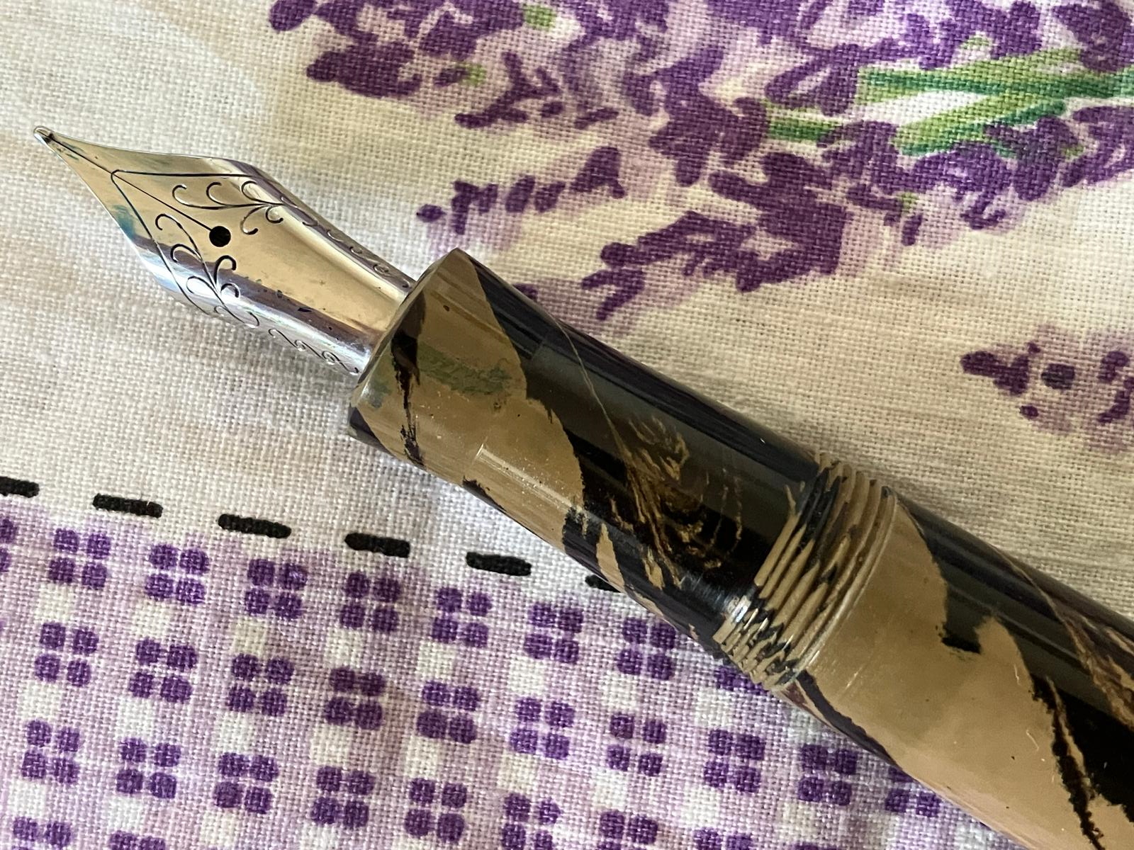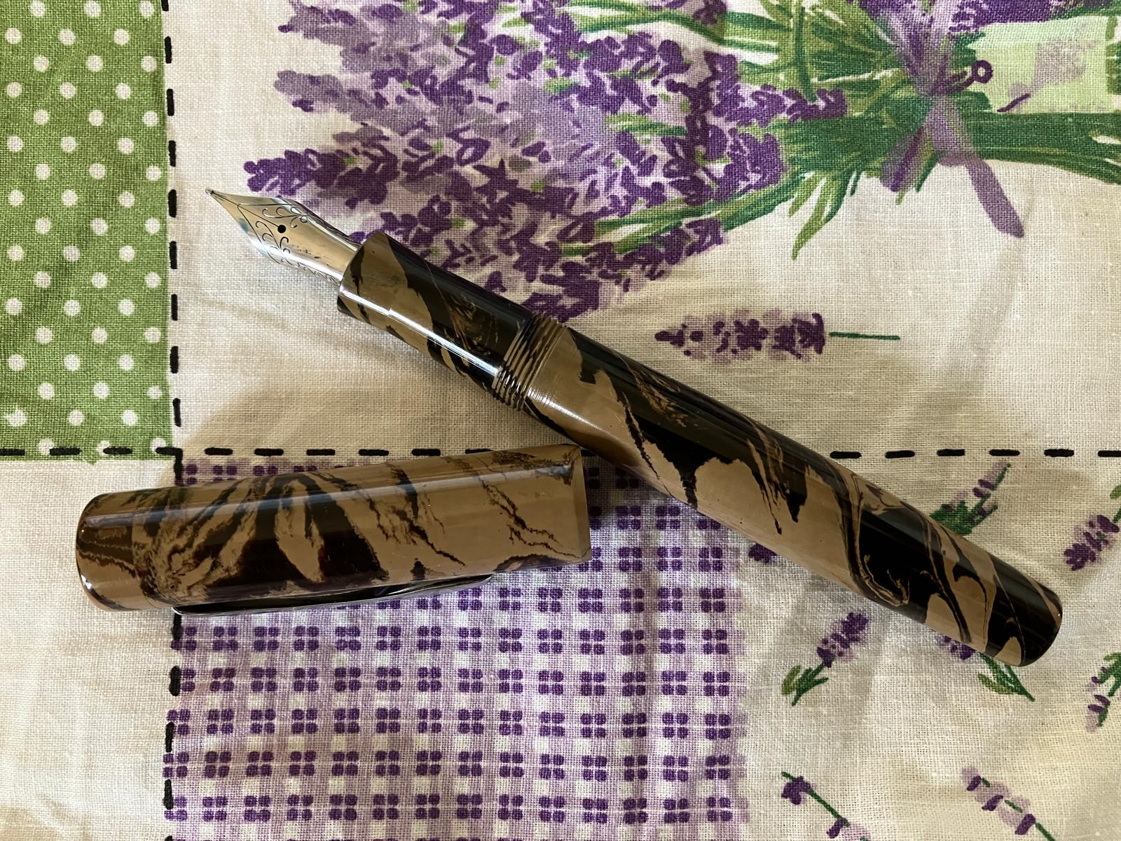 Bella recensione Enrico! Provata ieri, mi è piaciuta molto per la leggerezza, anche se io non amo le ebaniti con venature, di nessun produttore, e infatti le ho tutte monocolore. Al di là del mio gusto estetico personale, la penna è bella da tenere in mano e mi ha affascinata ancora di più quando ho scoperto che era eyedropper, sistema di caricamento che mi manca. Il pennino mi è parso molto affidabile con un bel flusso.