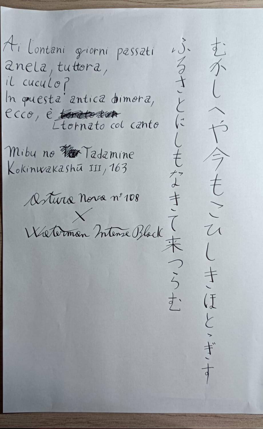 La carta è Tomoe River, la traduzione della poesia è di Sagiyama (2000)