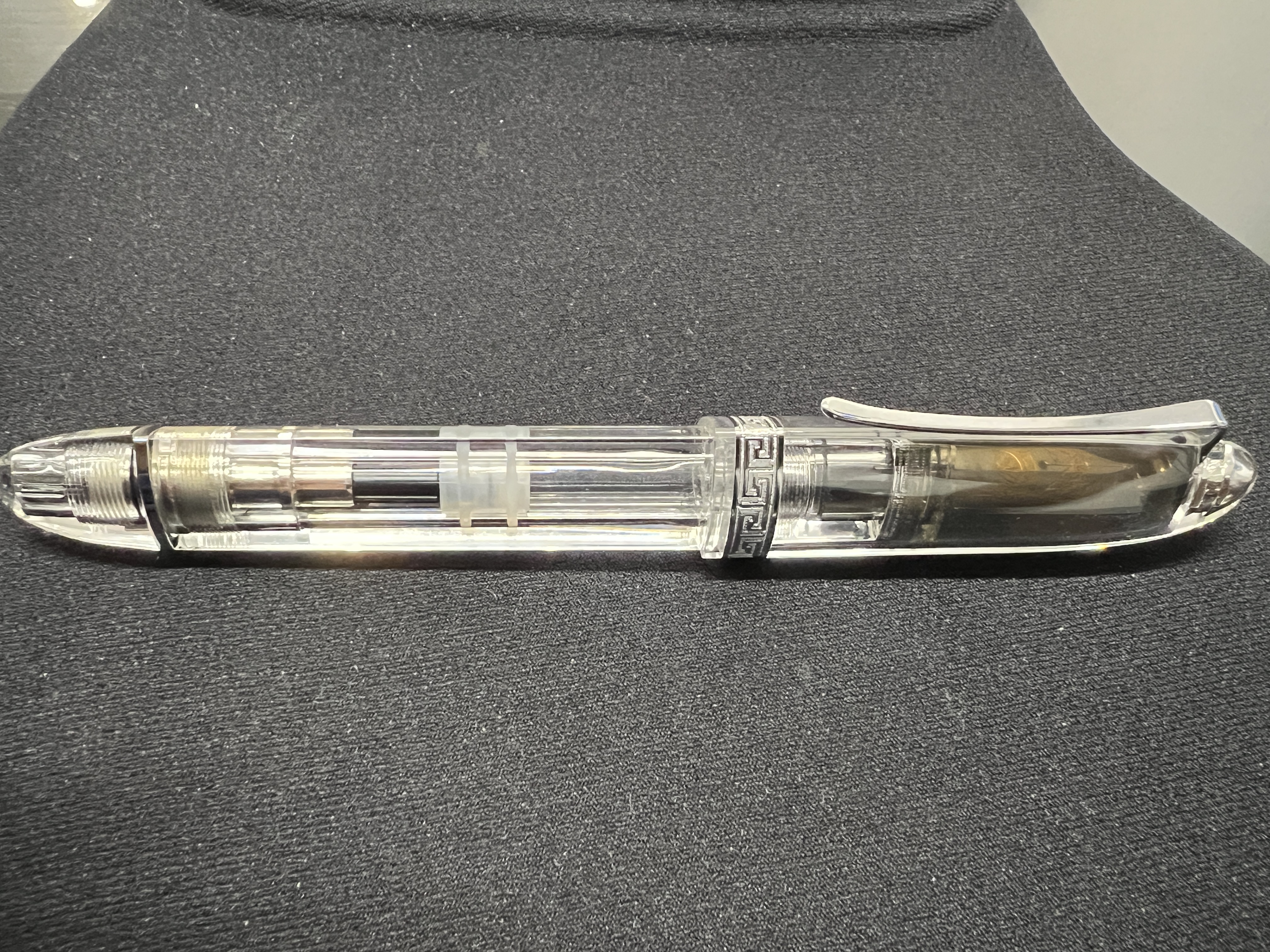 La penna carica 0.854 ml il che è veramente sorprendente in modo piacevole visto che le stilografiche moderne con converter non si discostano troppo da 0.9 ml. Quindi garantisce una buona autonomia.