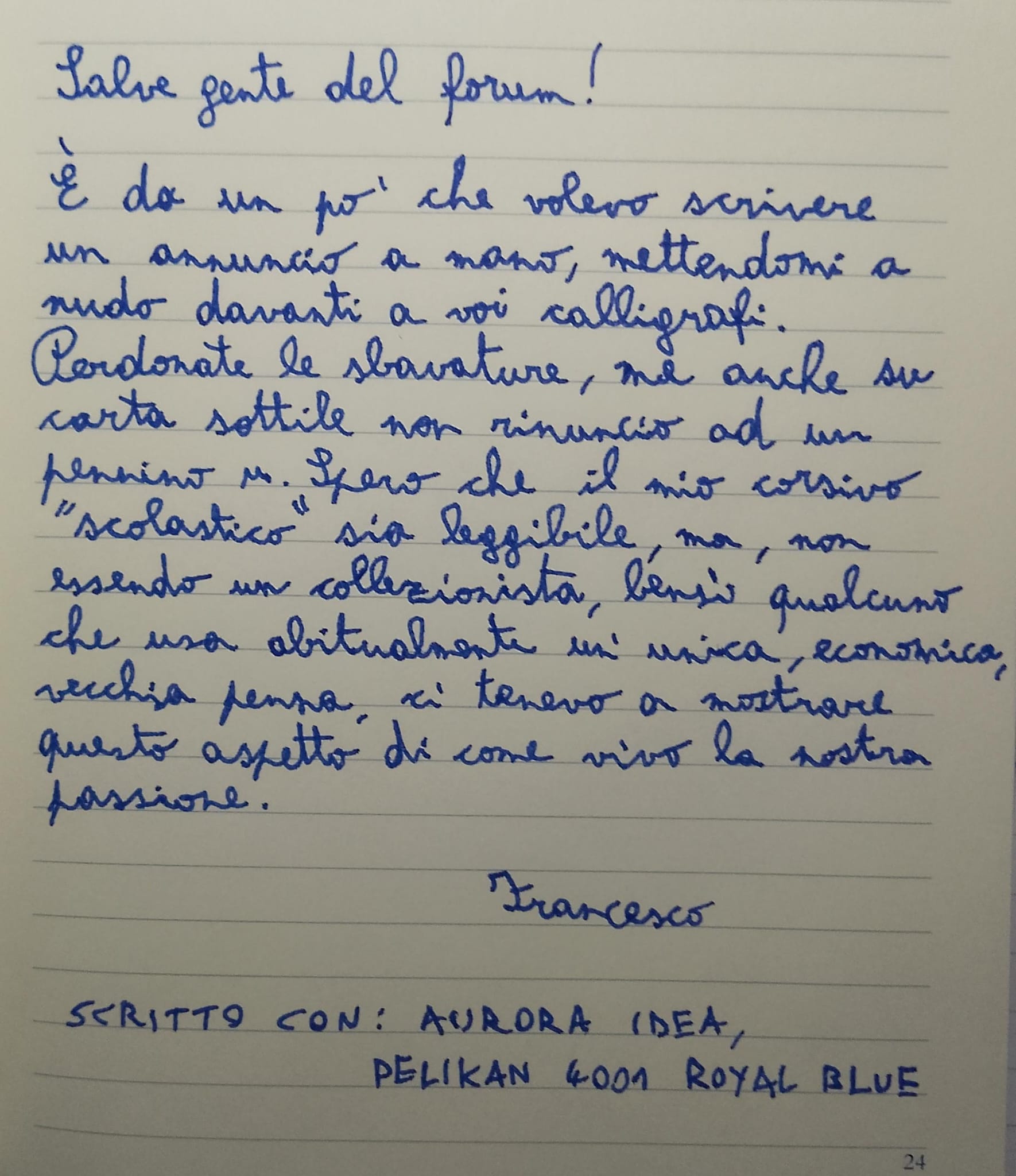Io apprezzo la passione per la stilografica in tutte le sue forme e le grafie. E io la leggo bene la tua grafia. Quindi grazie!