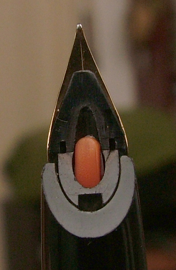 Non conoscevo la Geha con la riserva d'inchiostro, sino a che ne ho trovata una al mercatino e l'ho presa, nel ripulirla e sistemarla mi domandavo cosa fosse quella barretta mobile sul collettore, grazie al "nostro" Fountainpen.it Wiki ne sono venuto a conoscenza, il sistema con una operazione in più (spingere manualmentela barretta per poter prolungare il collettore) ha l'identico pricipio della Aurora 98 R.M.