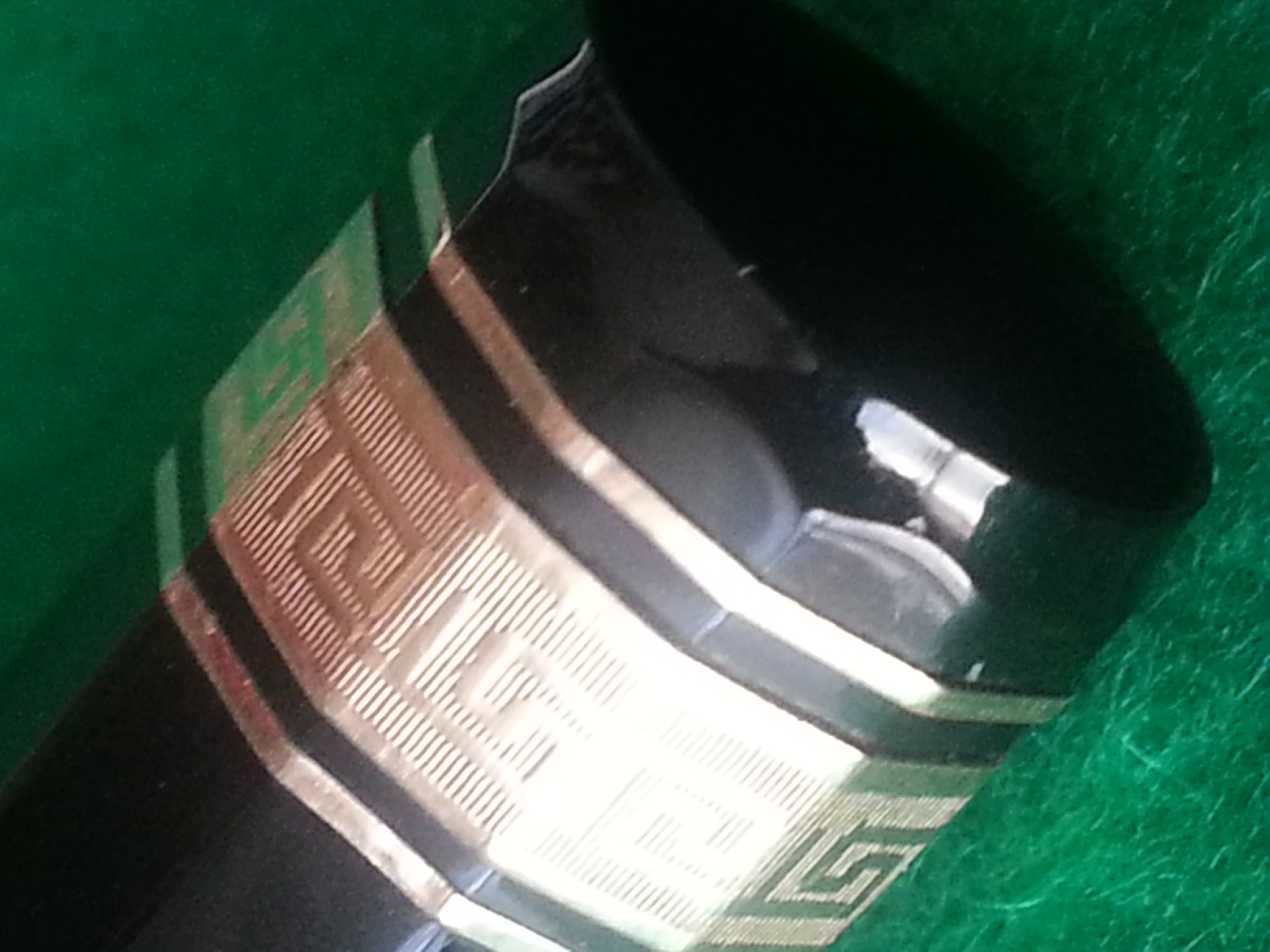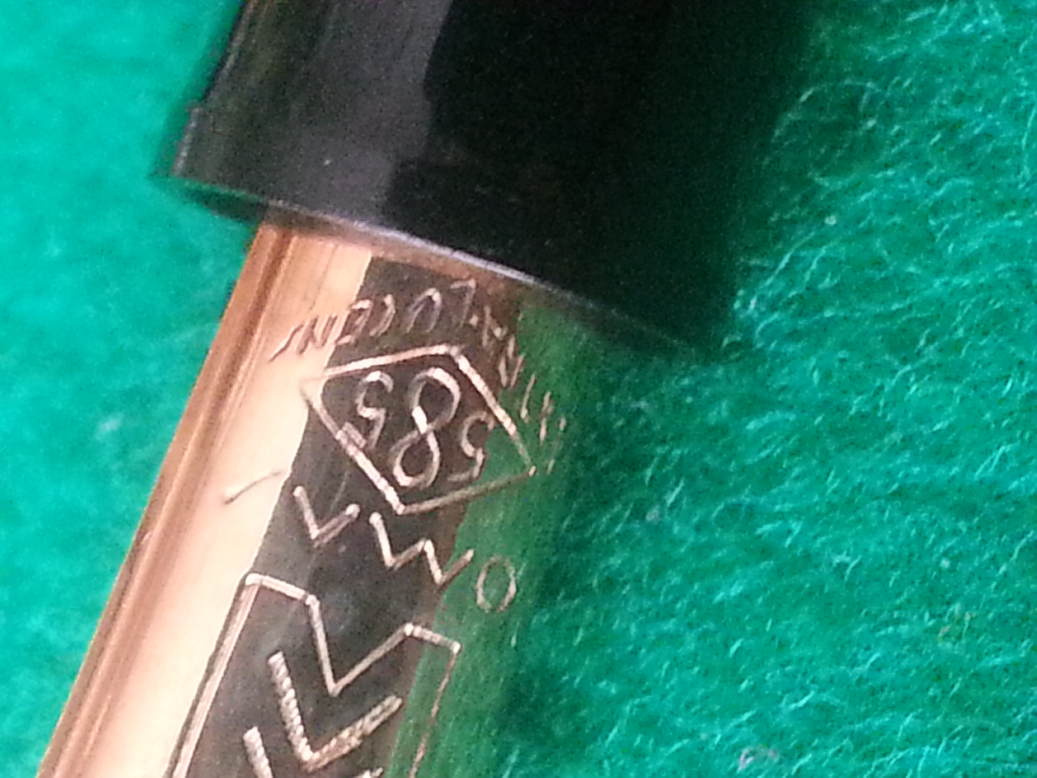 Qui si vedono la E, il labbro squadrato del cappuccio e lo spazio che rimane una volta avvitato