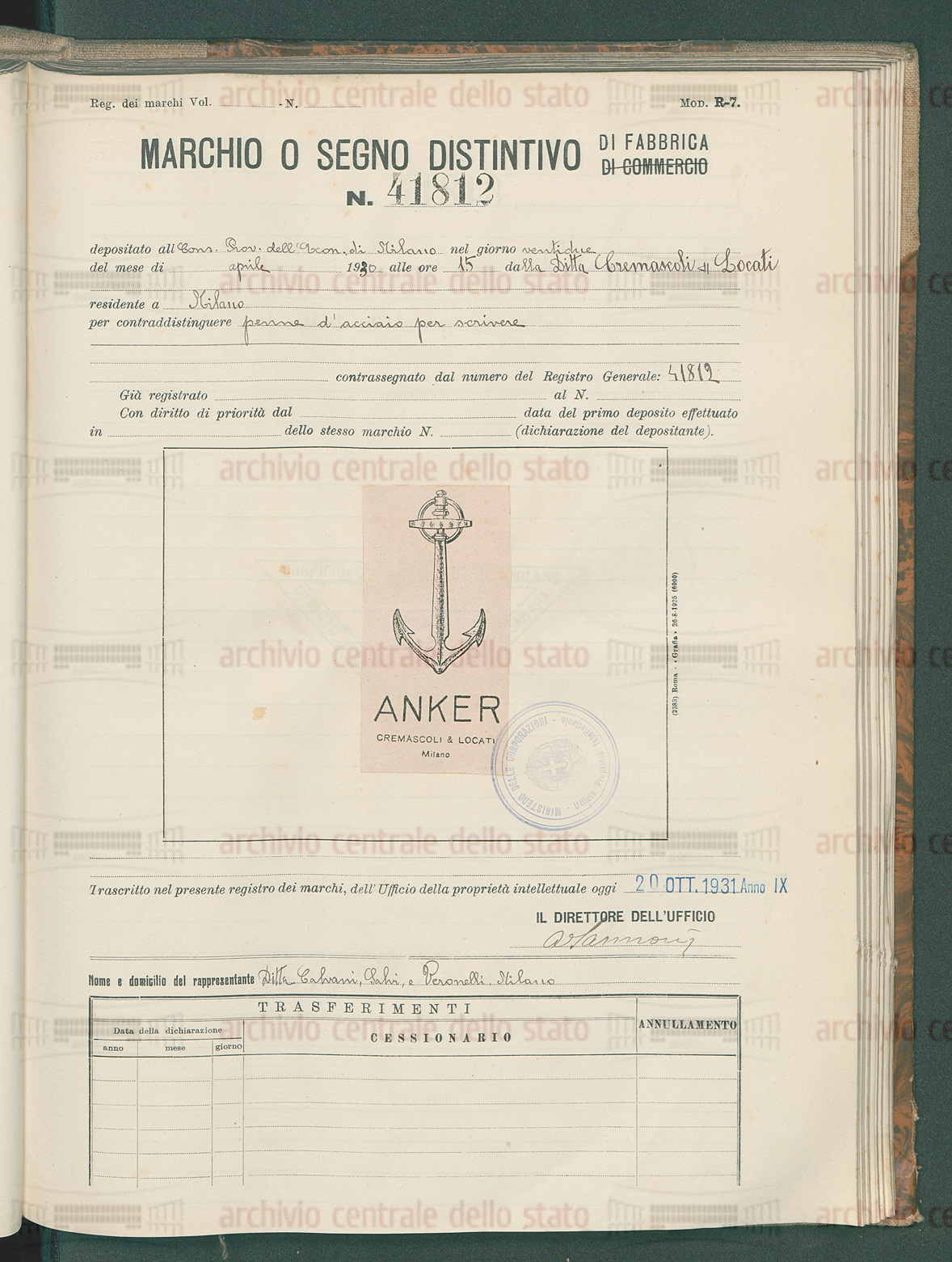 La prima registrazione è del 1930: la "ditta di penne d'acciaio per scrivere Cremascoli&Locati" registra il marchio "ANKER" il cui simbolo è proprio un'ancora.