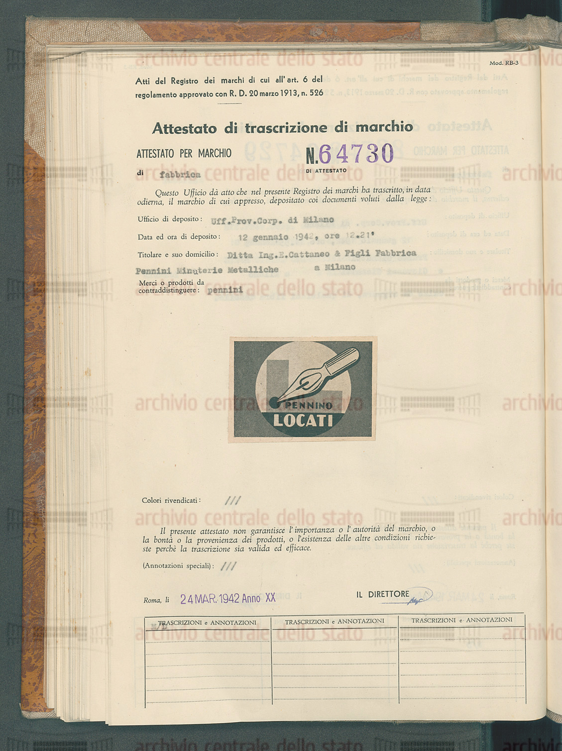 Nel 1942 il marchio di pennini "Locati" viene registrato a nome della ditta "ing. E. Cattaneo & figli fabbrica pennini minuterie metalliche".