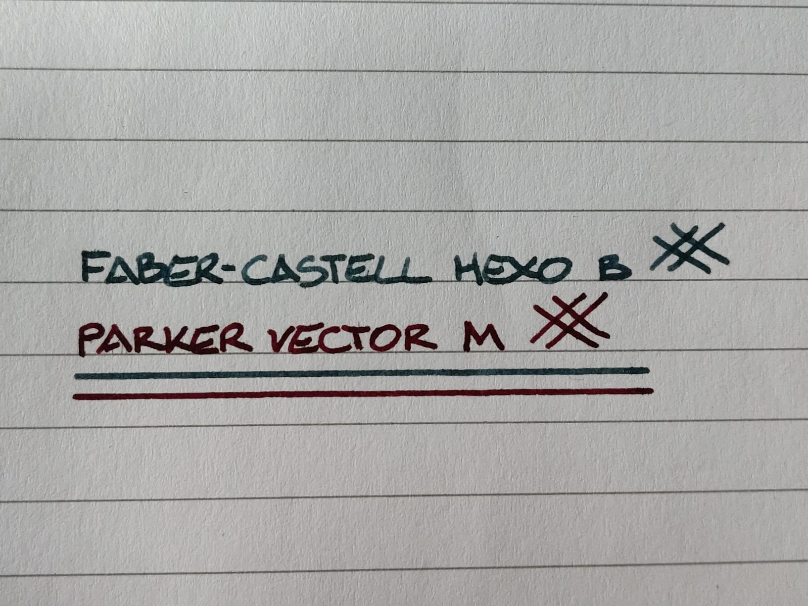 Io possiedo una Parker Vector con pennino F, il pennino non riporta lo spessore del tratto che è però inciso sull'alimentatore; devo dire che pur se marchiato F in realtà si tratta tranquillamente di un medio europeo e anche il flusso è abbondante.