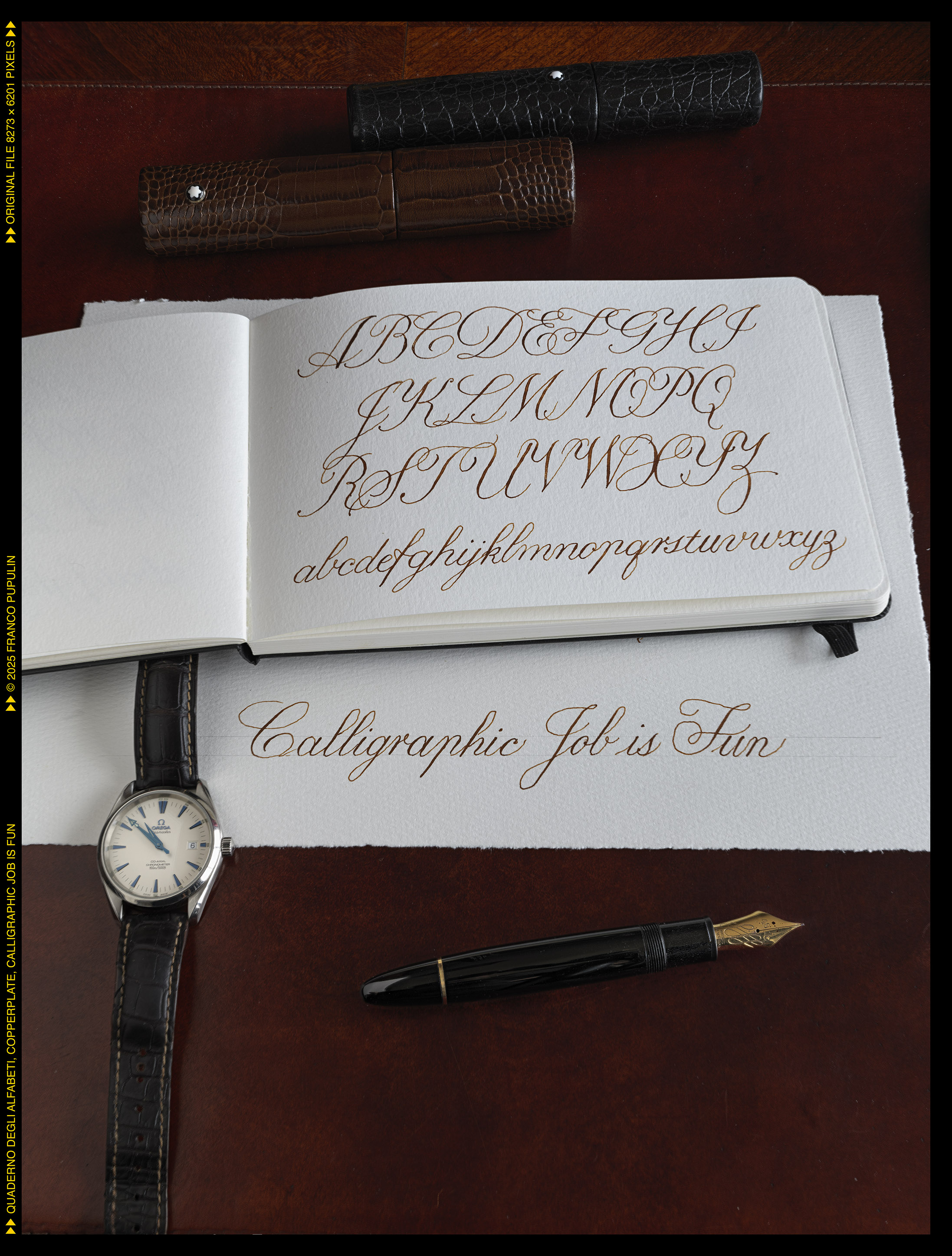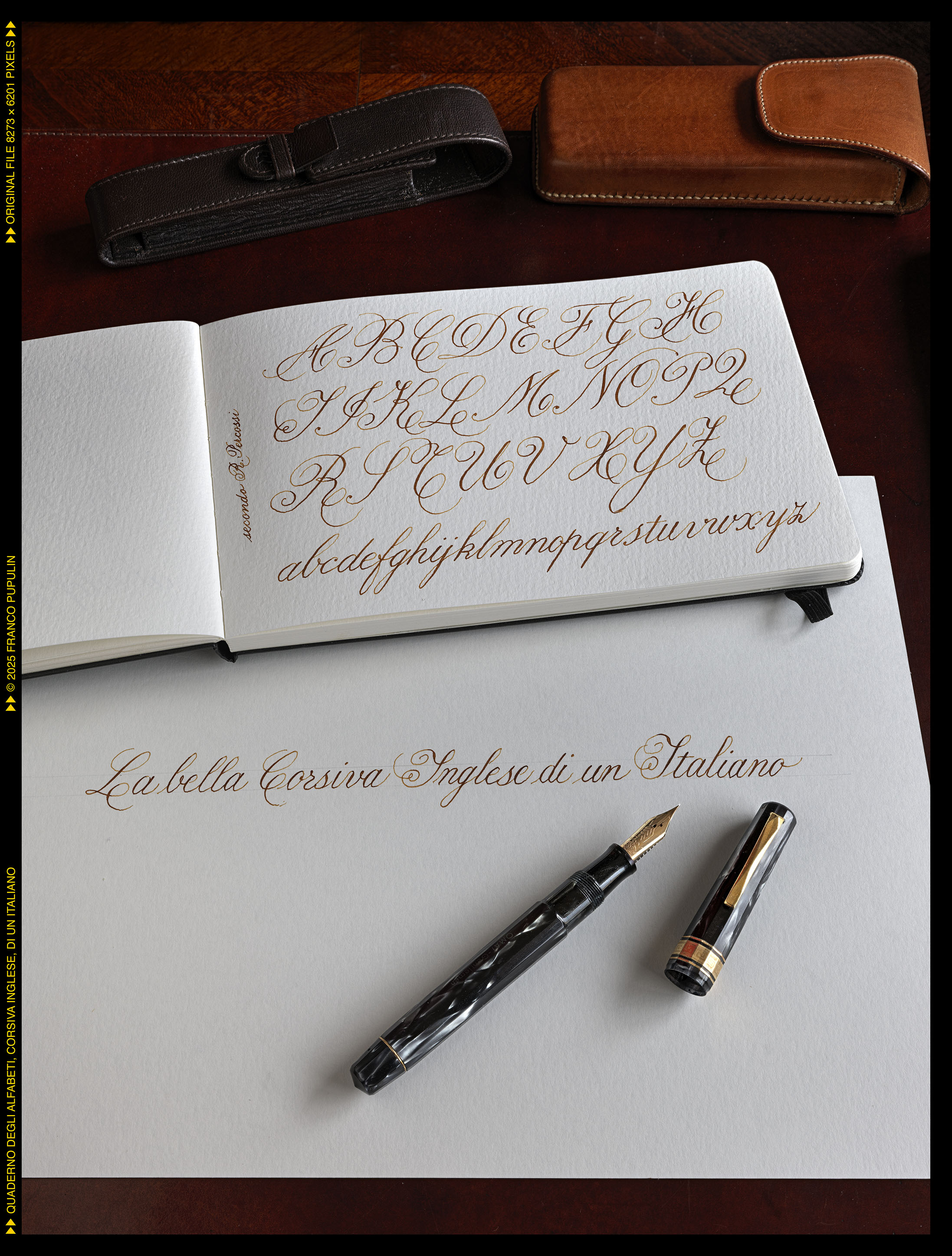 Come anticipato, ecco ancora non uno, ma bensì due alfabeti in corsiva inglese (o Copperplate). Mi piacciono molto, nel secondo, originalmente disegnato dal cavalier Ranieri Percossi, varie delle lettere maiuscole -che trovo molto aggraziate-, e gli ovali stretti delle lettere minuscole (a,c,d,e,g,o,q). Alla prossima!