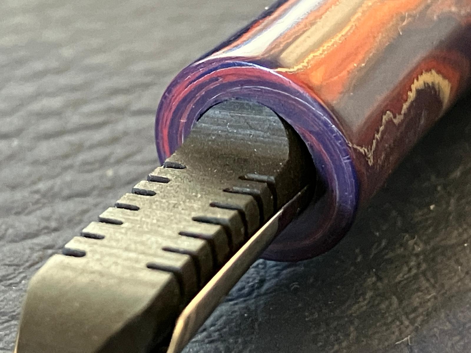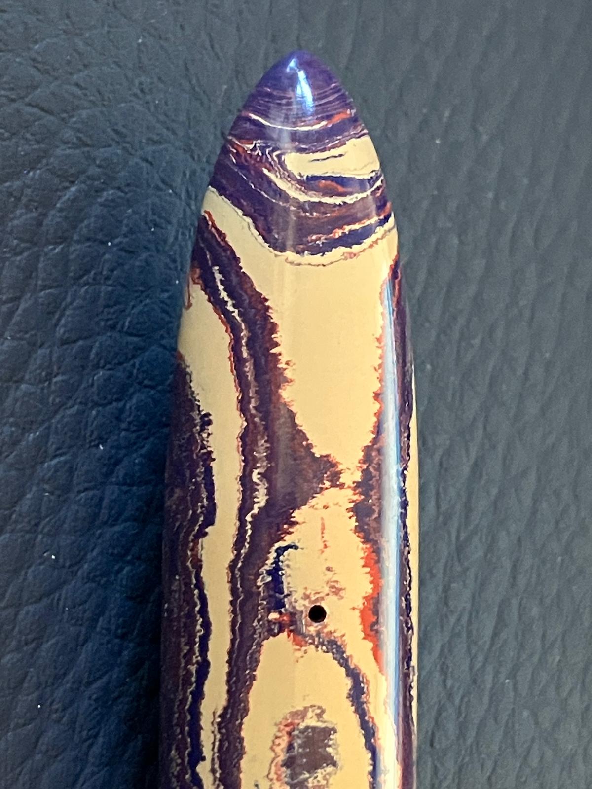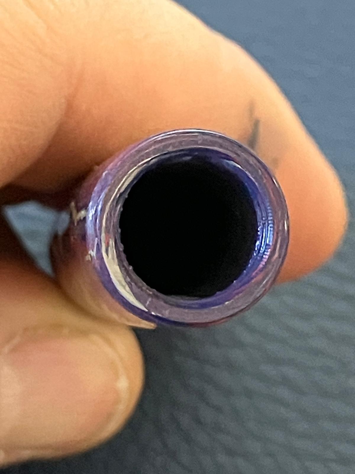 il cappuccio reca un piccolissimo forellino che permette alla penna di essere aperta senza aspirare inchiostro nel cappuccio: