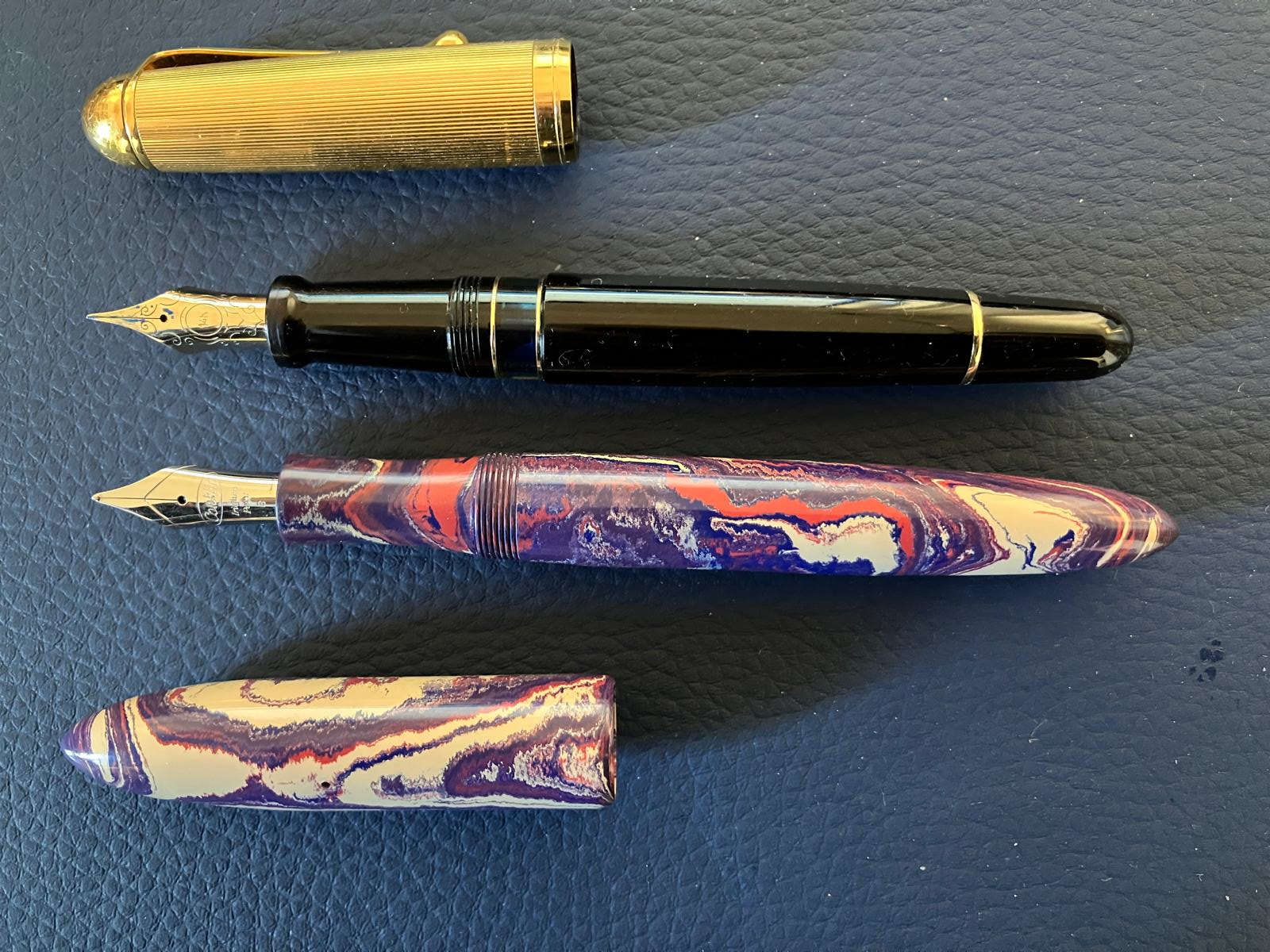 Non serve attendere, alimentatore e pennino sono già ben carichi, l'inchiostro è un filo più liquido del solito perché per misurare la carica del fusto ho usato l'acqua, poi non l'ho lasciato asciugare. Il Majestic comunque un po' di diluizione la apprezza essendo parecchio saturo.