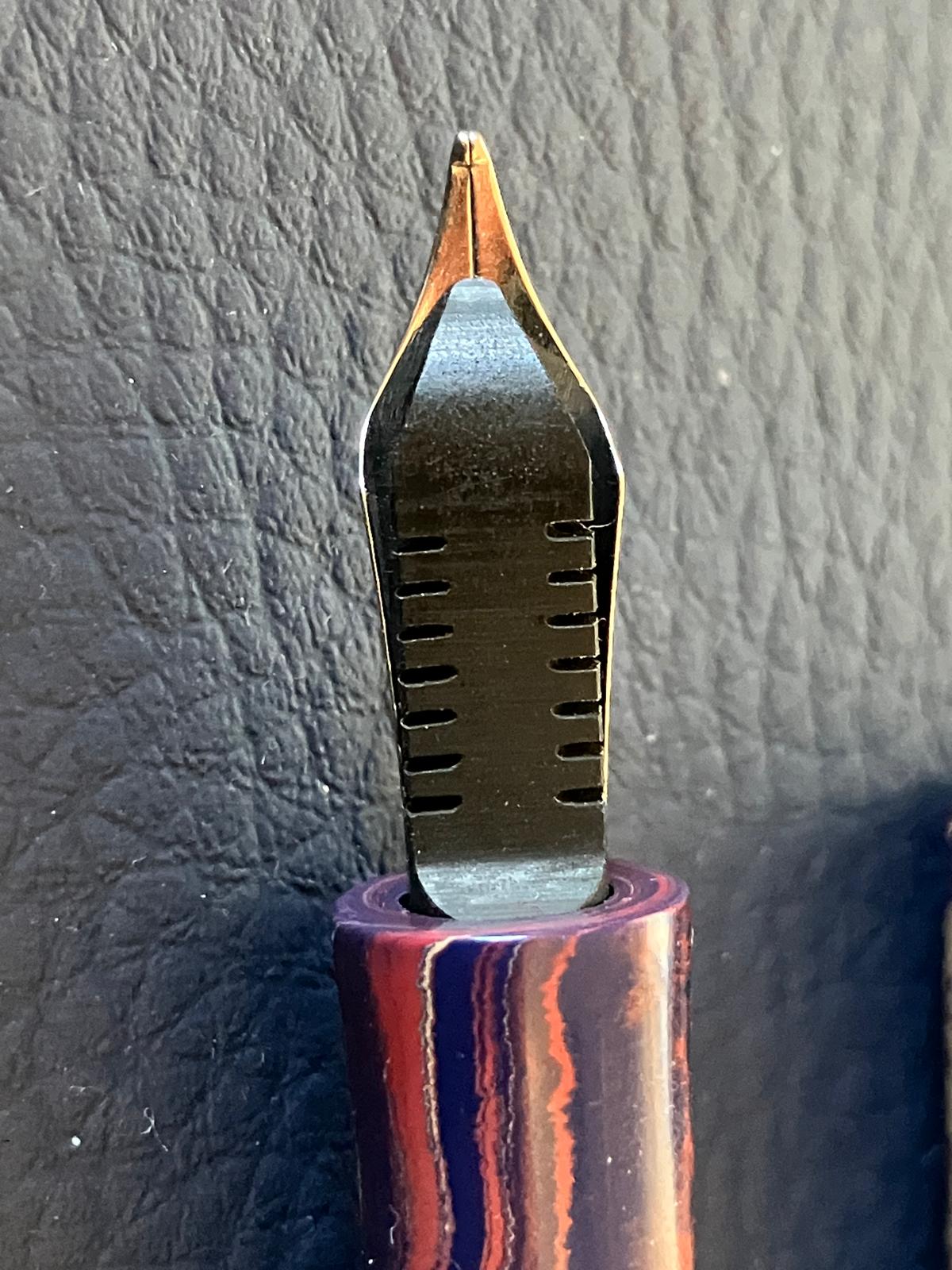 Il pennino su questa Ranga, in acciaio, è marcato Conklin ed è (era) prodotto da Bock, tratto B.