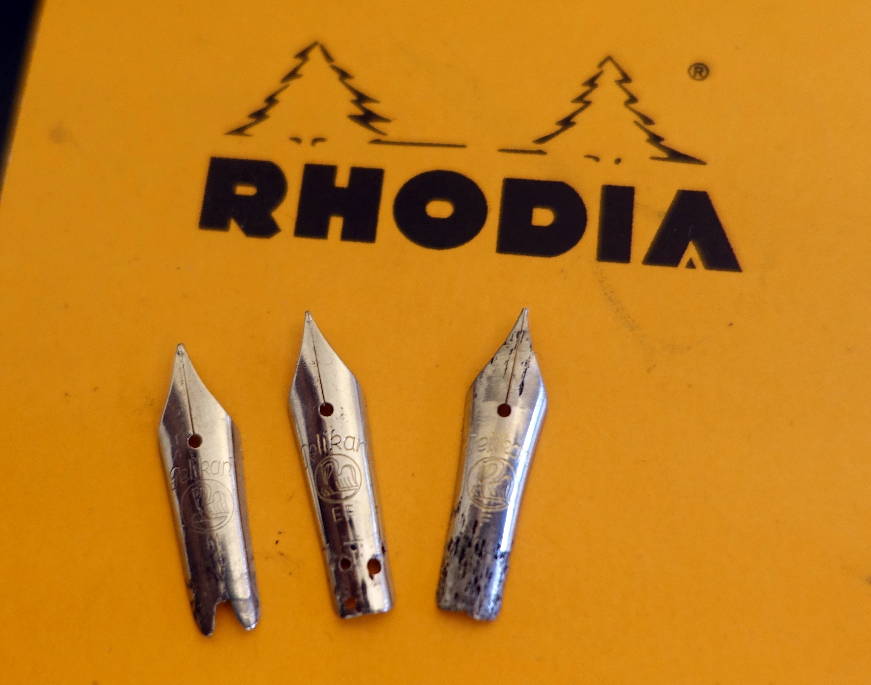 Purtroppo di pennini così combinati (rosicchiati dai topini) me ne sono capitati tanti, secondo me dipende dal fatto che oltre ad usare inchiostri estremamente aggressivi, questi sono rimasti per decenni nelle penne, in pratica sono state caricate e lasciate per decenni finchinchè l'inchiostro ha fatto il suo lavoro poi si è seccato.