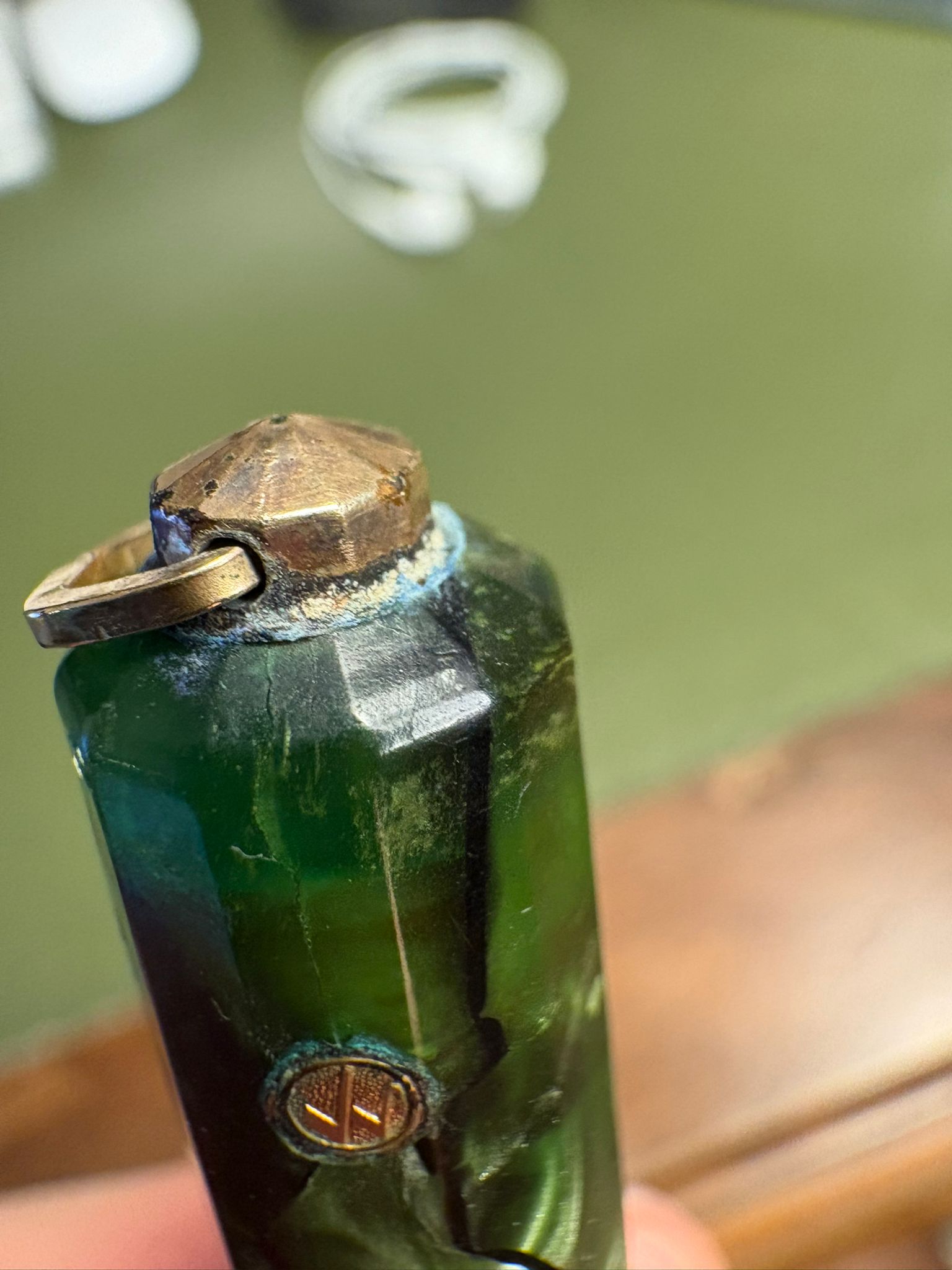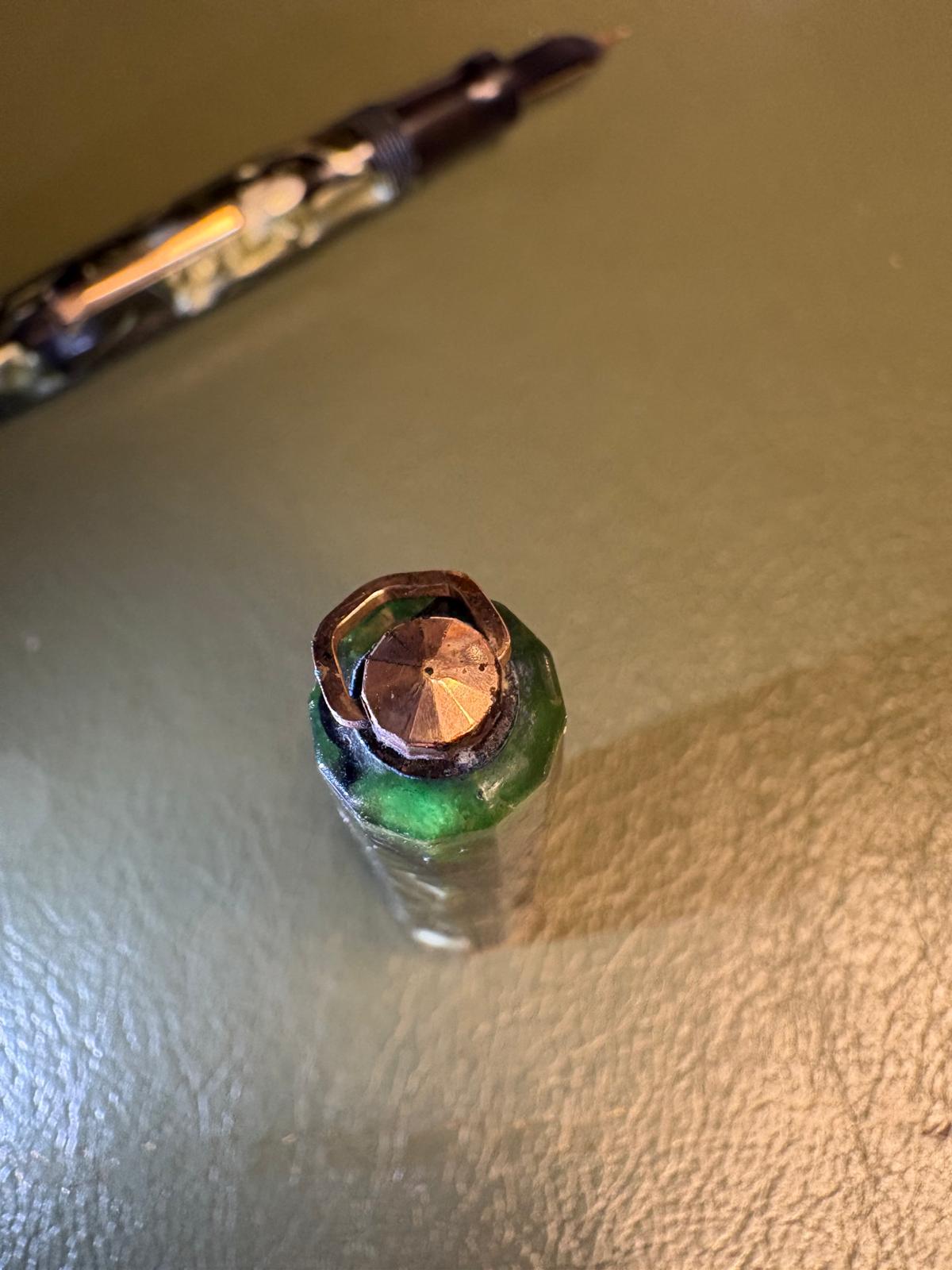 Bellissima, ma stai attento tienilka lontana da altre penne in celluloide, la parte superiore del cappuccio è cristallizzata, vedi prima foto che hai pubblicato..