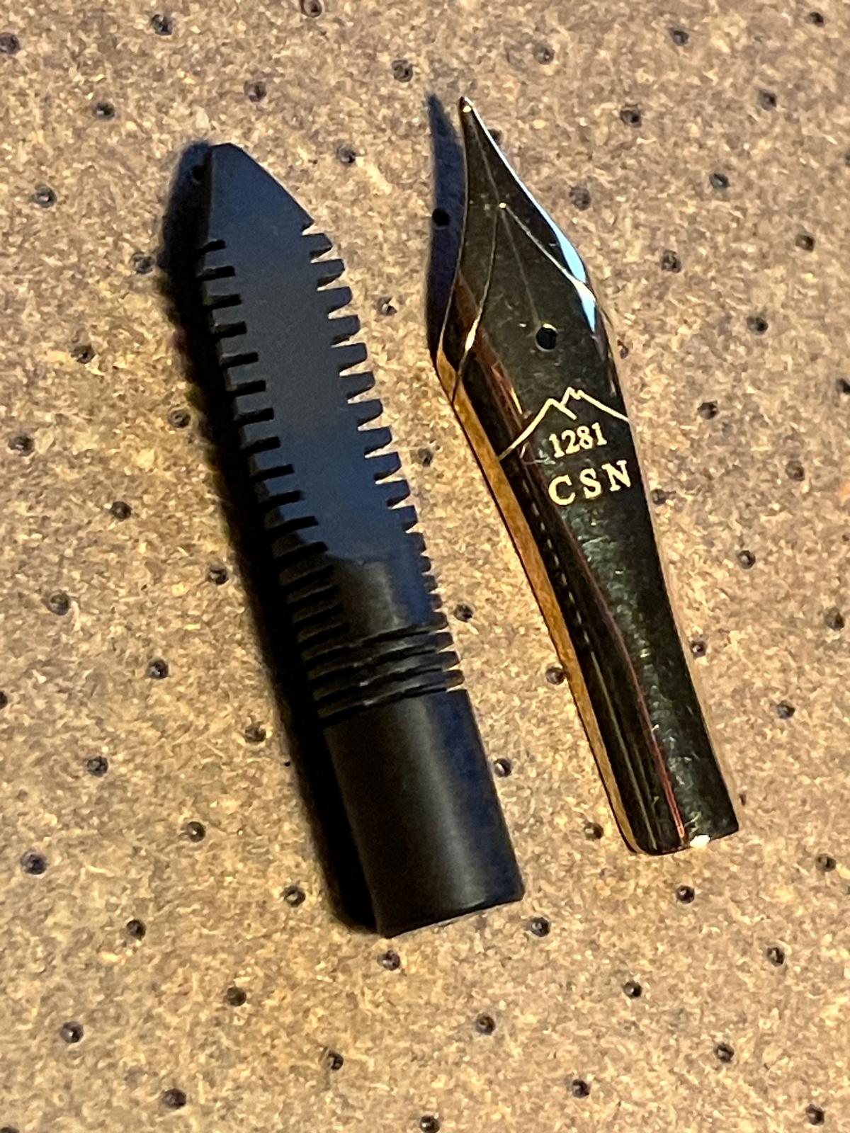Purtroppo la possibilità di montare altri pennini - un tipico size 6 tipo Jowo, che potrebbe calzare più a fondo - è limitata dallo spazio libero nel cappuccio, non oltre 2,2 cm. Ho provato un Jowo, ma il pennino tocca il fondo del cappuccio e il cappuccio non si chiude.