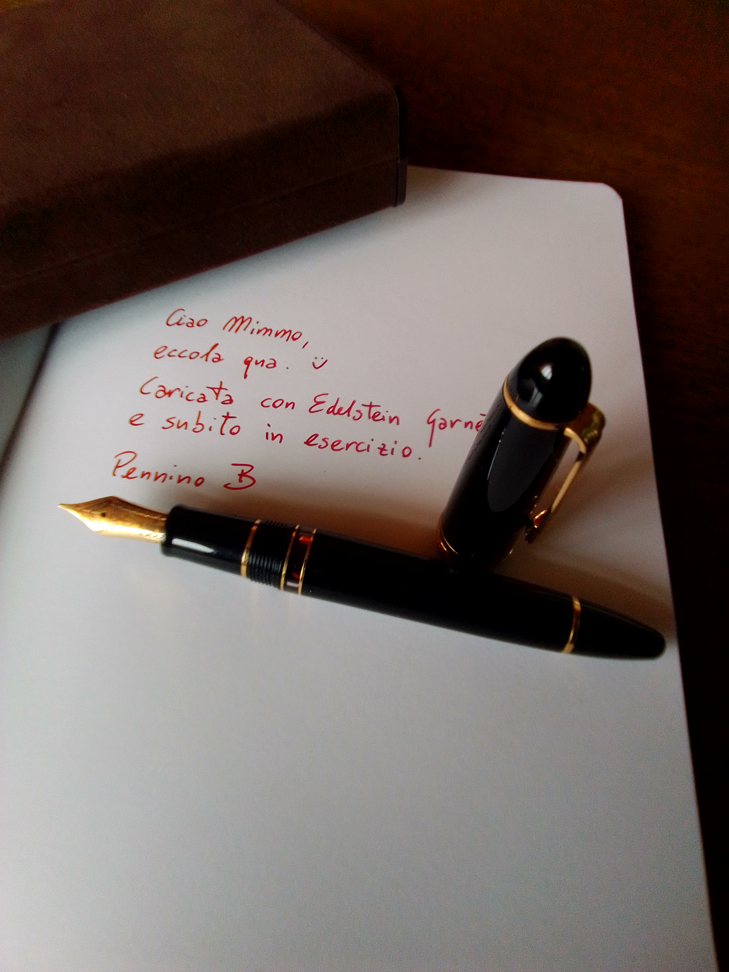 Bello il pennino B, ce l'ho su una Pro Gear standard, è un medio quasi fine... (gli ultrafini non fanno per me)