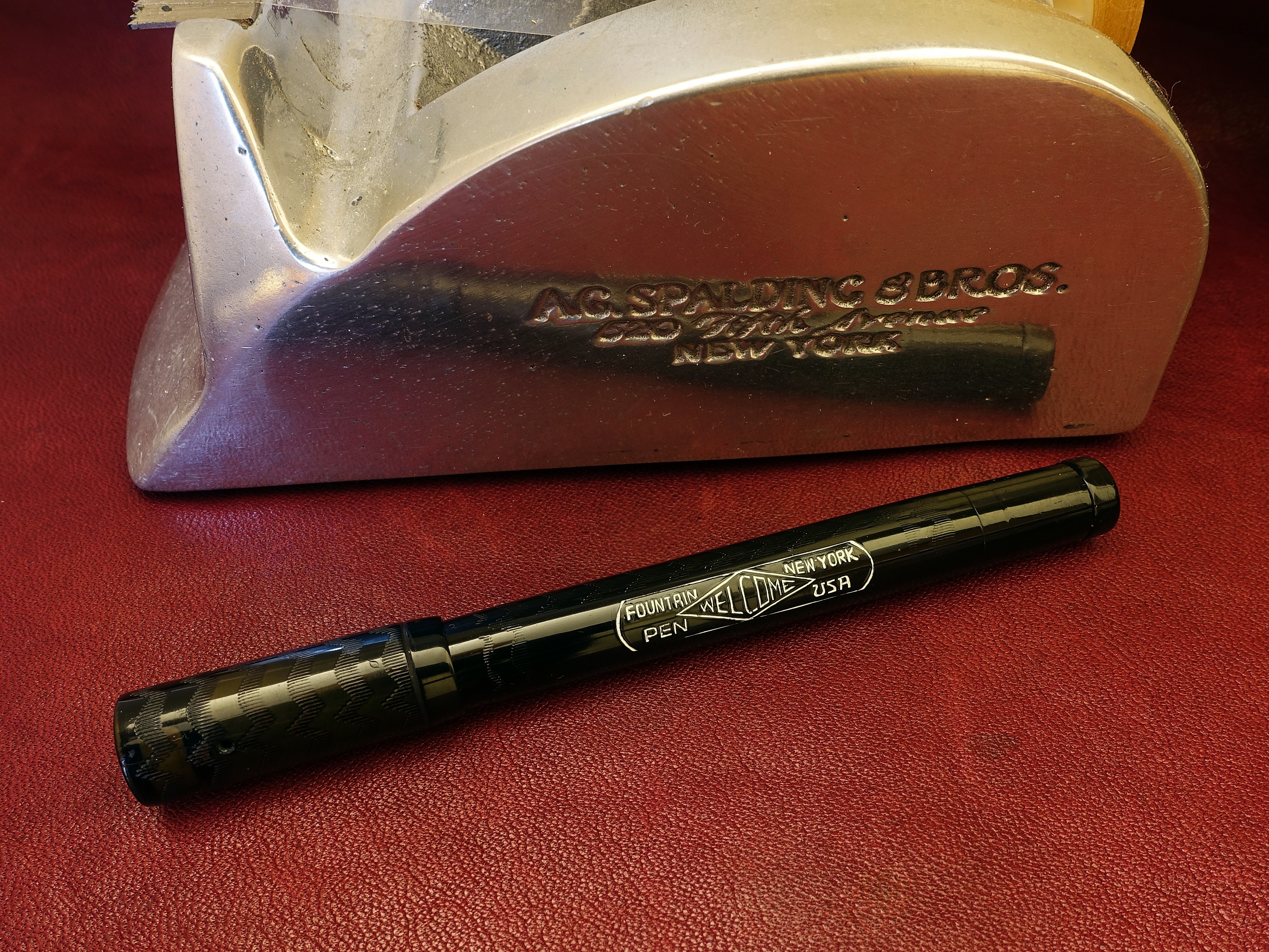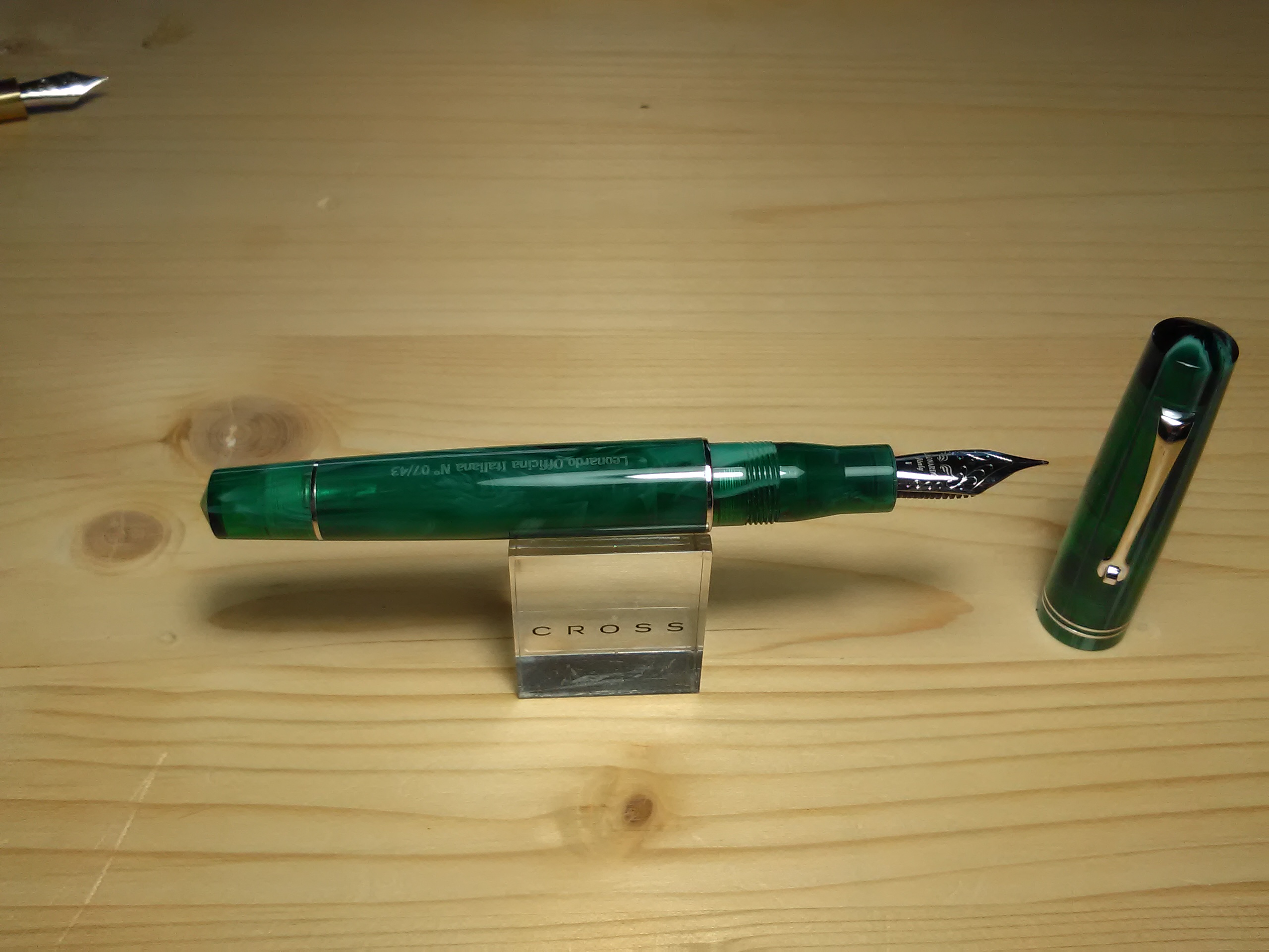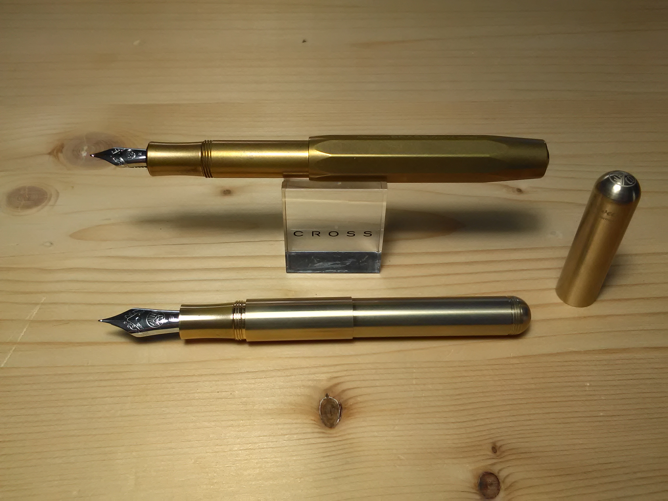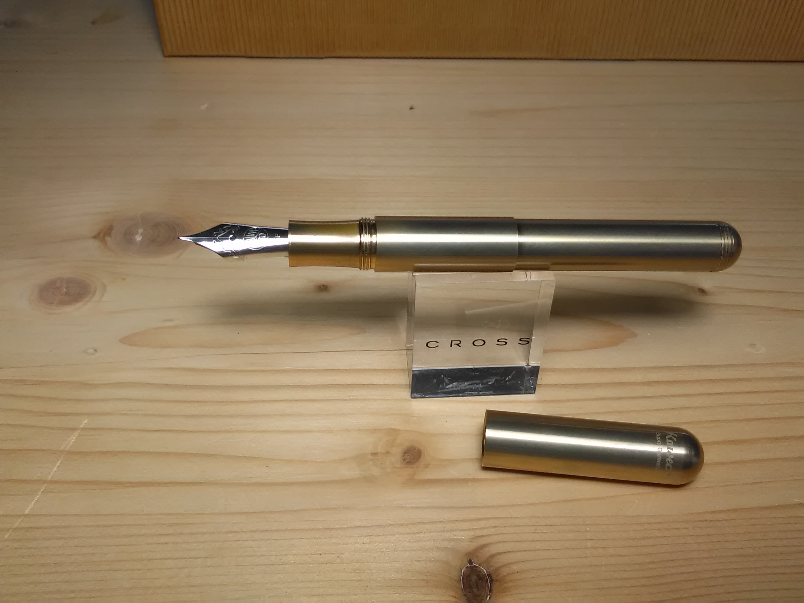 Ho la versione in ottone, non ho problemi per il peso anche con il cappuccio inserito, la devo solo sostenere poi il peso contribuisce. Pennino M, al momento cartucce proprietarie fino a esaurimento. Anche con la Supra nessun problema.