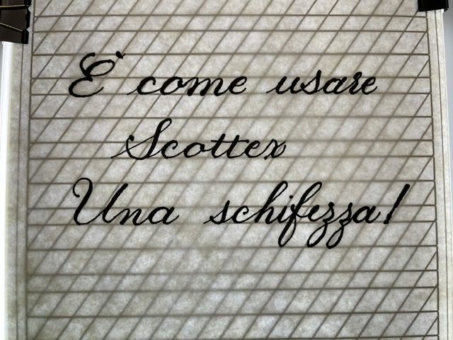 In realtà i pareri negativi mi pare riguardassero la Calligraphy Millerighe, commenti che condivido per esperienza. La Calligraphy Pergamena è nettamente migliore. Ce ne sono anche altre varianti, sempre nella collezione Calligraphy, come la Canvas, che sta a metà come comportamento con l'inchiostro.Koten90 ha scritto: ↑giovedì 17 febbraio 2022, 17:48 È la stessa che nell’altro post viene definita come orrenda e assolutamente inadatta per stilografiche?