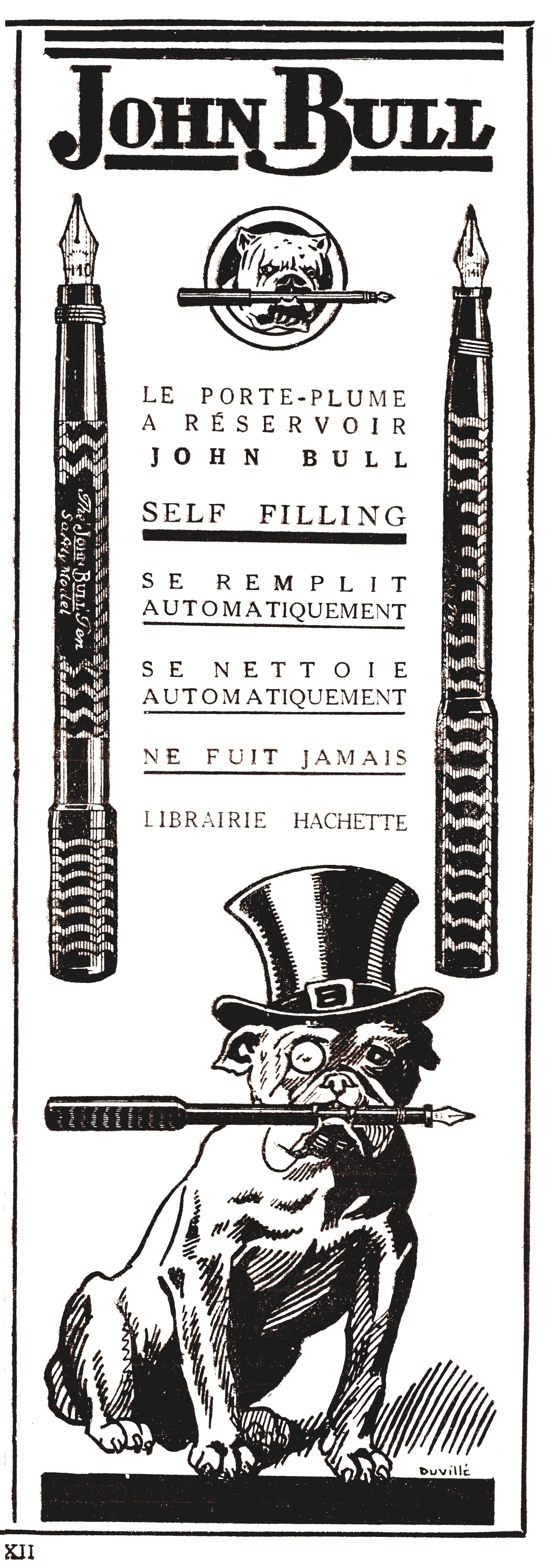 (dal “trade mark” in giù) si presentano in inglese, per evidenziare uno dei pochi cedimenti all’esterofilia documentati nella cultura francese, la concreta origine produttiva in Inghilterra non è stata ancora ricostruita sul nostro Wiki in una voce dedicata (per questo confidiamo in Alberto!