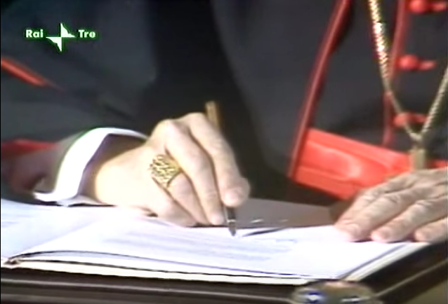 Questa è la mano del Card. Casaroli, mentre firma il Concordato dell'84 con Craxi.