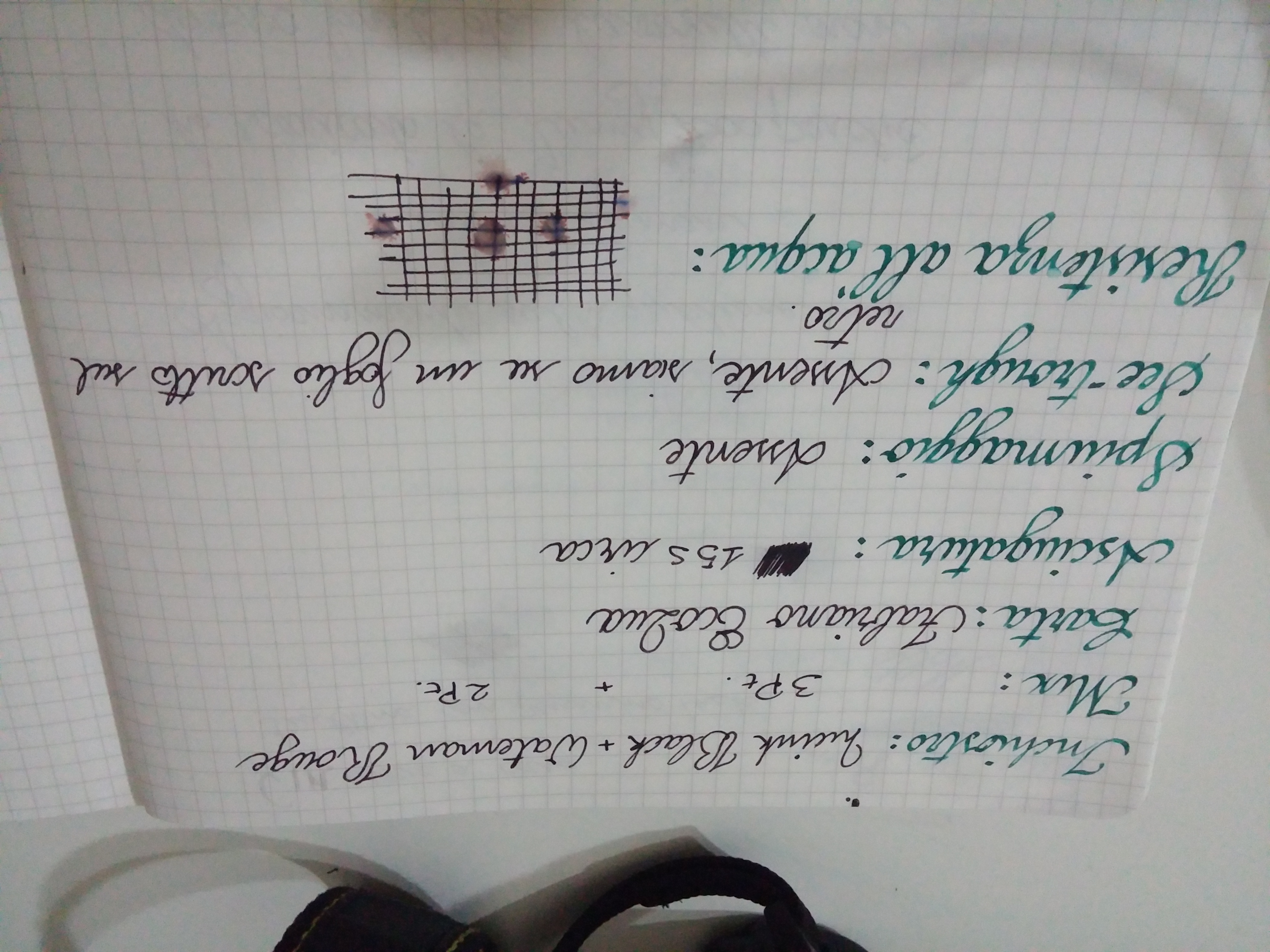 Del nero ho solo più qualche cartuccia, che non vedo l'ora di finire, e confermo quanto ha scritto Ciro: grigio topo (con tutto il rispetto per i topi) e piuttosto problematico nelle penne. Da non usare sulle Parker. Io le uso su una Aurora Marco Polo o su una Archivi Storici, entrambe con flusso anche troppo abbondante (un po' come si farebbe per il Pelikan 4001 black).