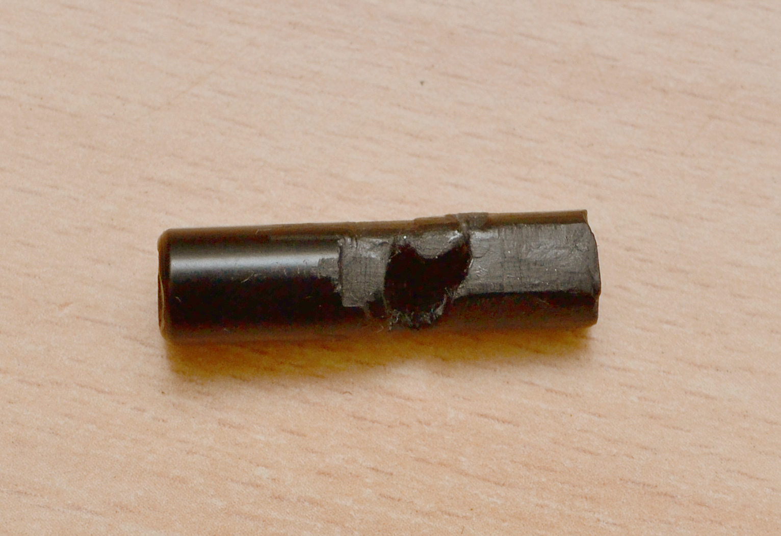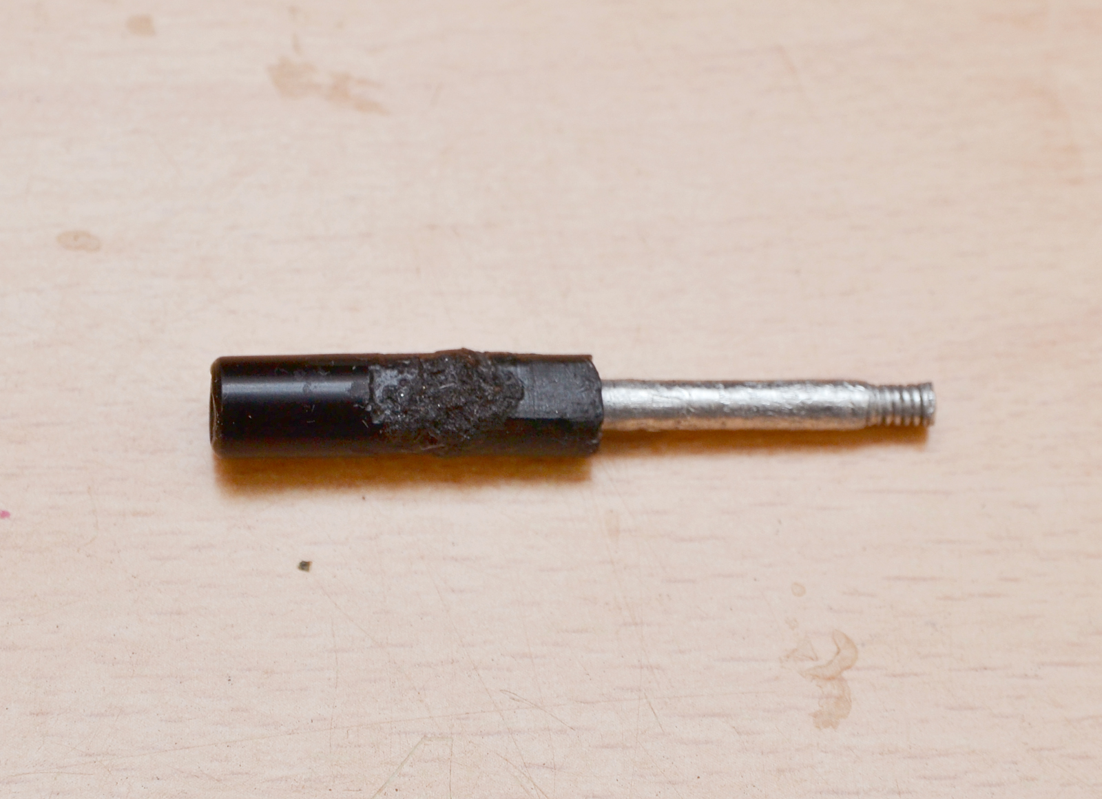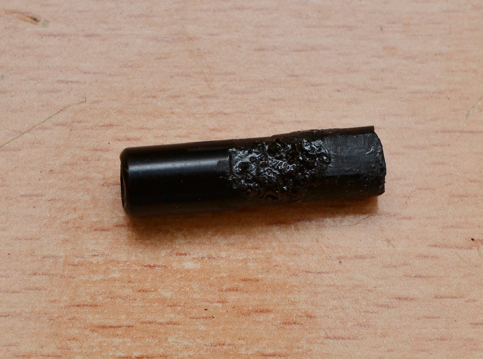 Fortunatamente è in ebanite e con dell' Attak e polvere di ebanite ricavata limando un pezzo di un rottame. sono riuscito a ripararla, ma non è stato facile, soprattutto ripigliare la filettatura interna.