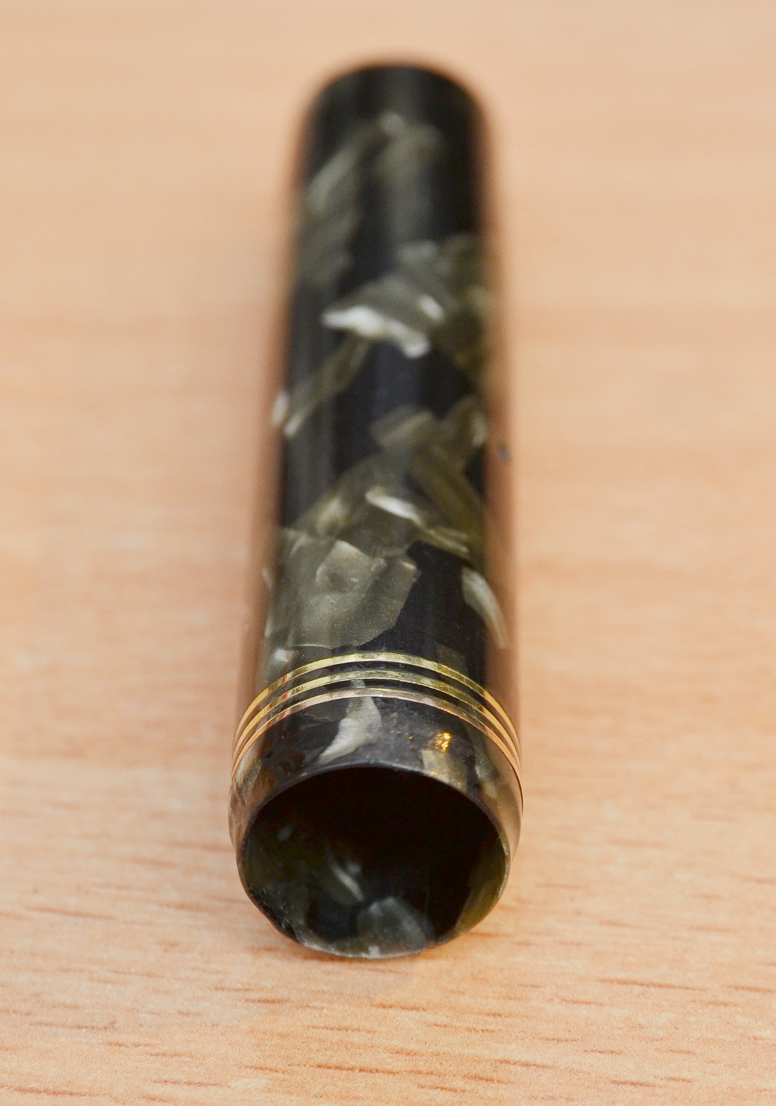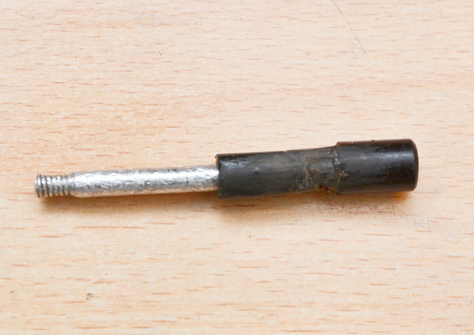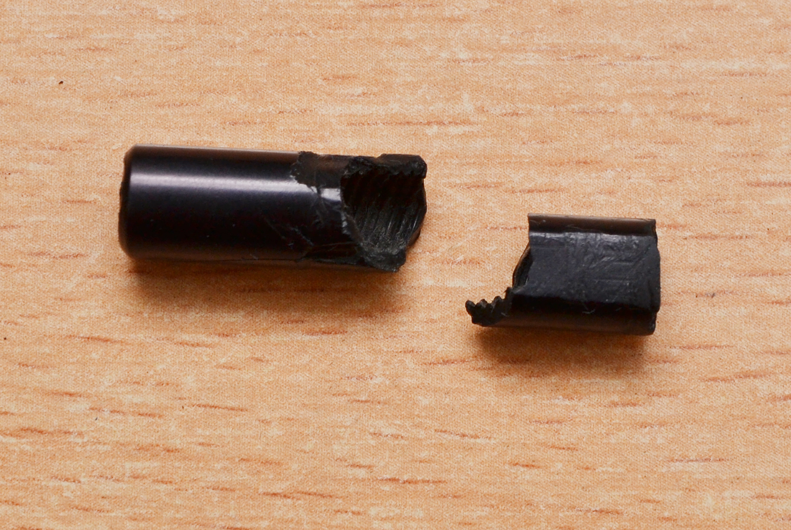 Fortunatamente è in ebanite e con dell' Attak e polvere di ebanite ricavata limando un pezzo di un rottame. sono riuscito a ripararla, ma non è stato facile, soprattutto ripigliare la filettatura interna.