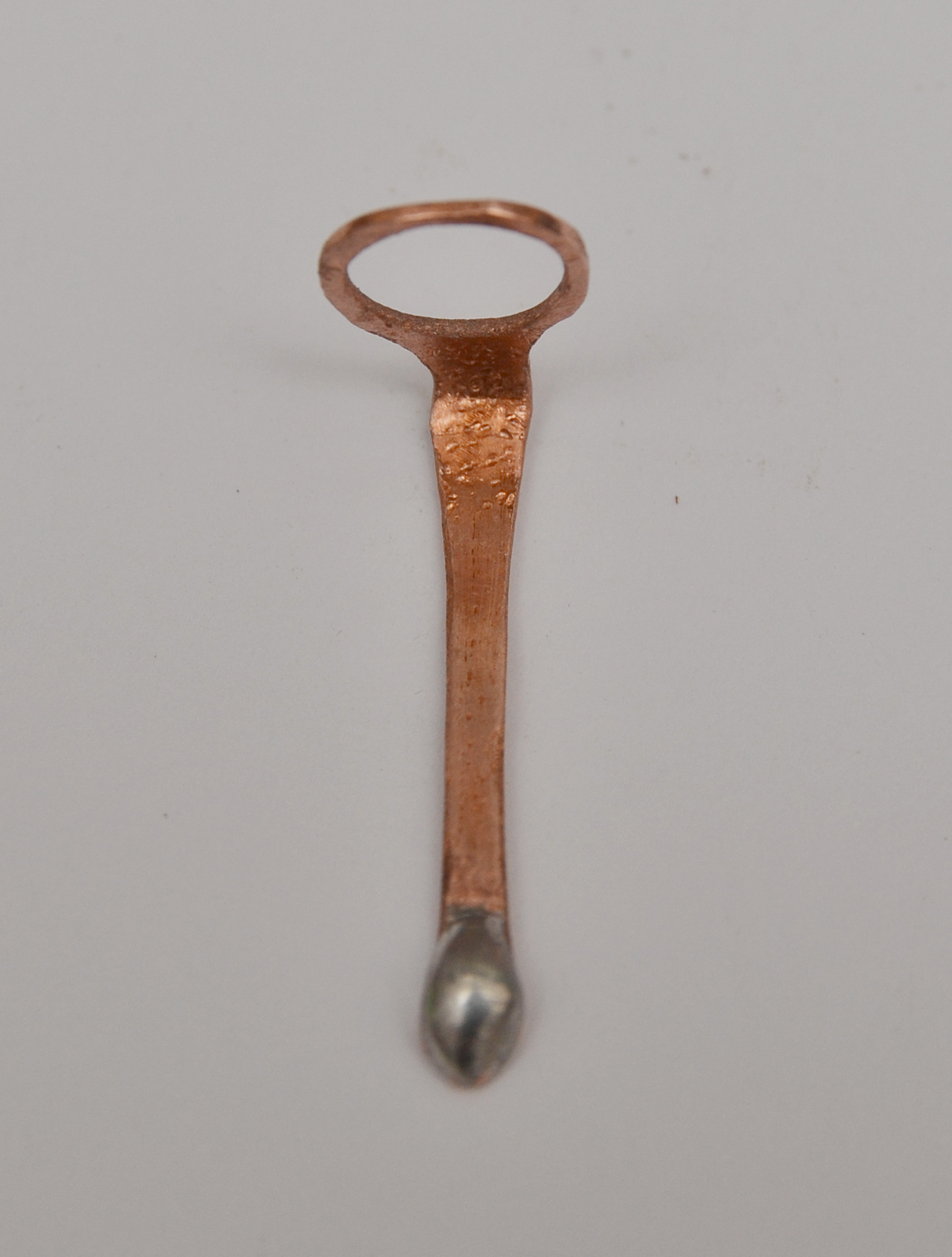 A questo punto ho smontato la clip ed assottigliata, poi saldato un pallino di stagno all'estremità della clip per facilitare l'inserimento nel taschino.