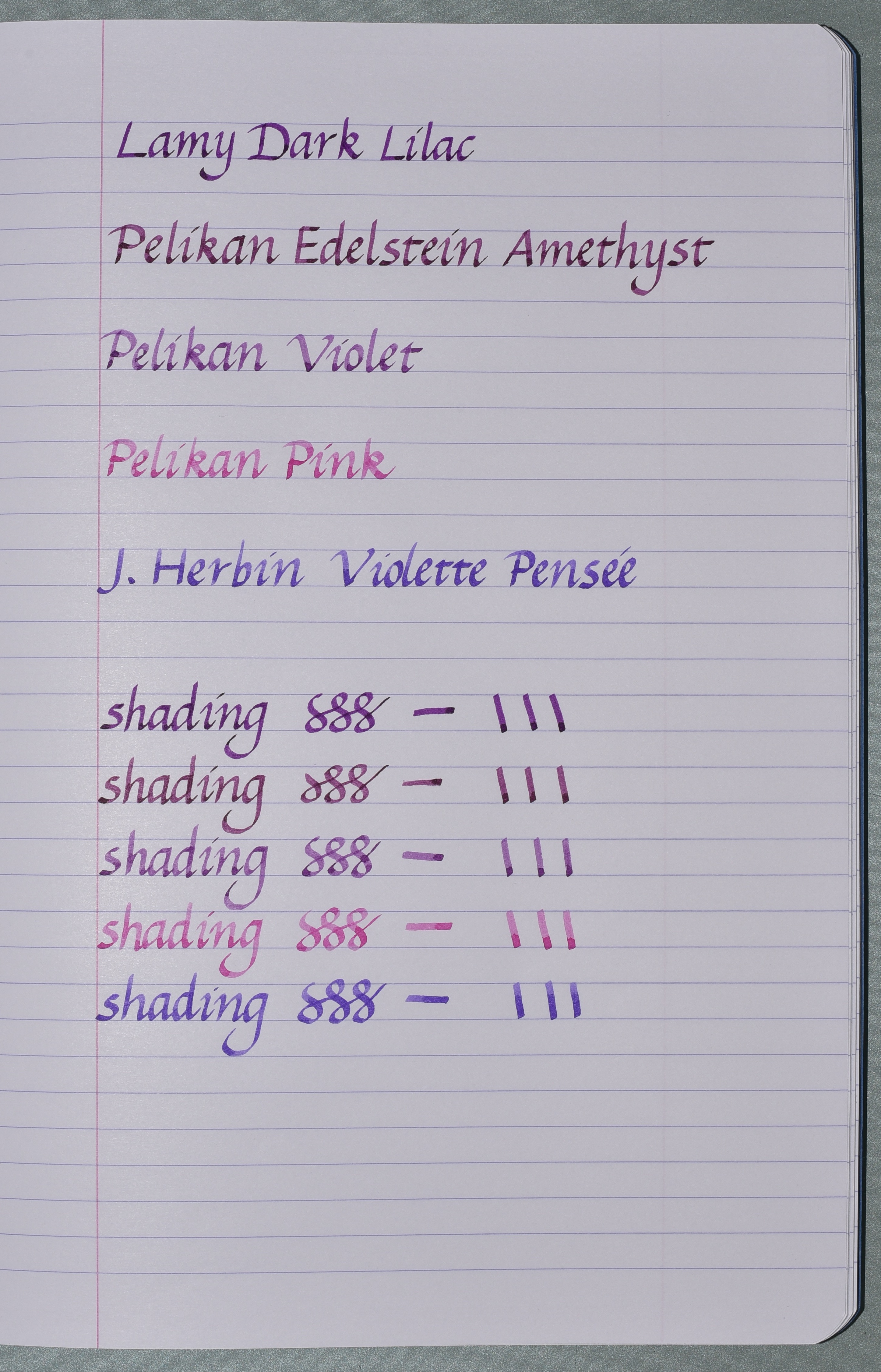 J. Herbin “Violette Pensée” (cartucce; Online Calligraphy 1.8)Quella dei “rosa” e “viola”: