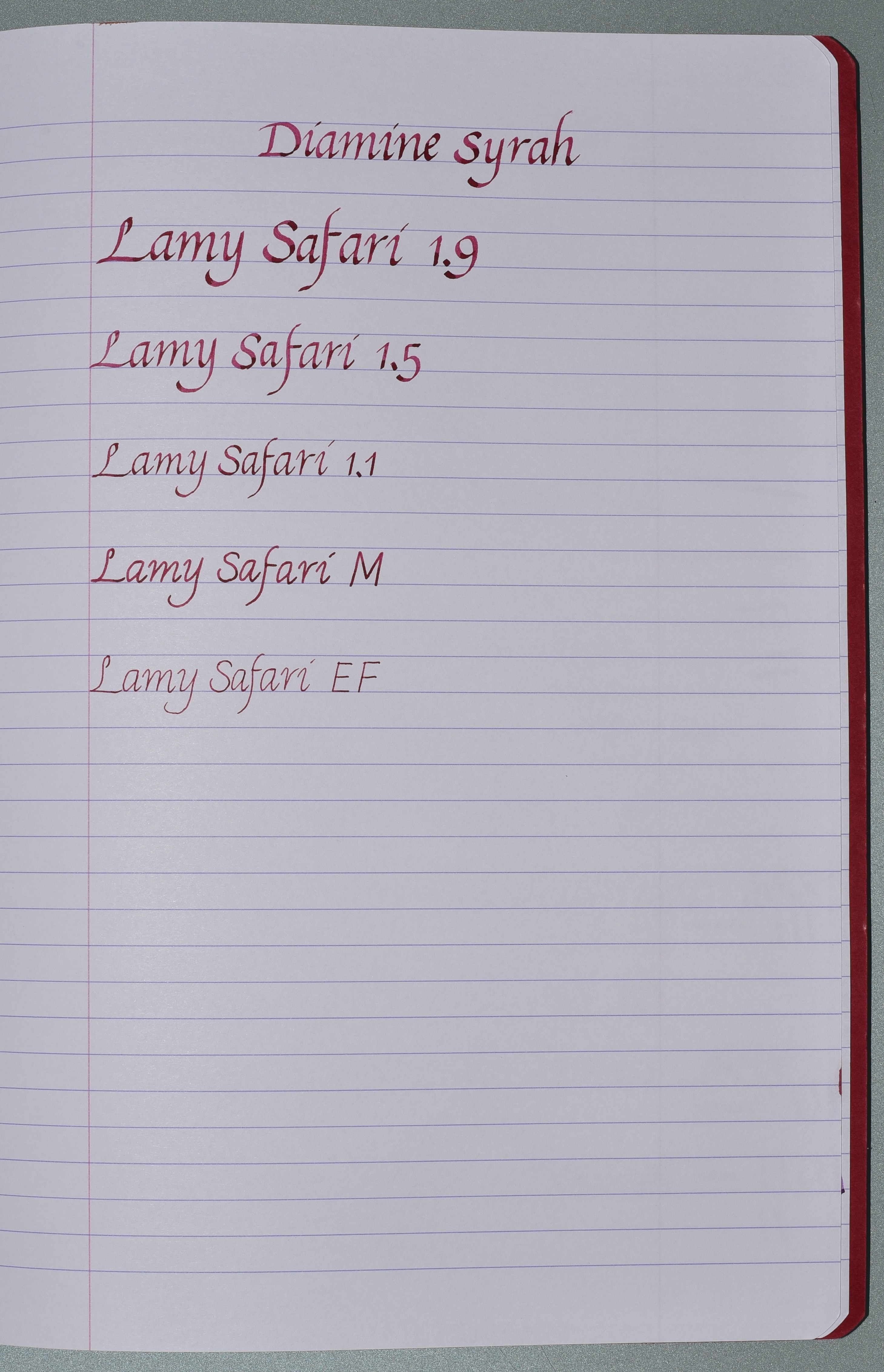 Diamine “Syrah” (boccetta; Lamy Safari 1.9)