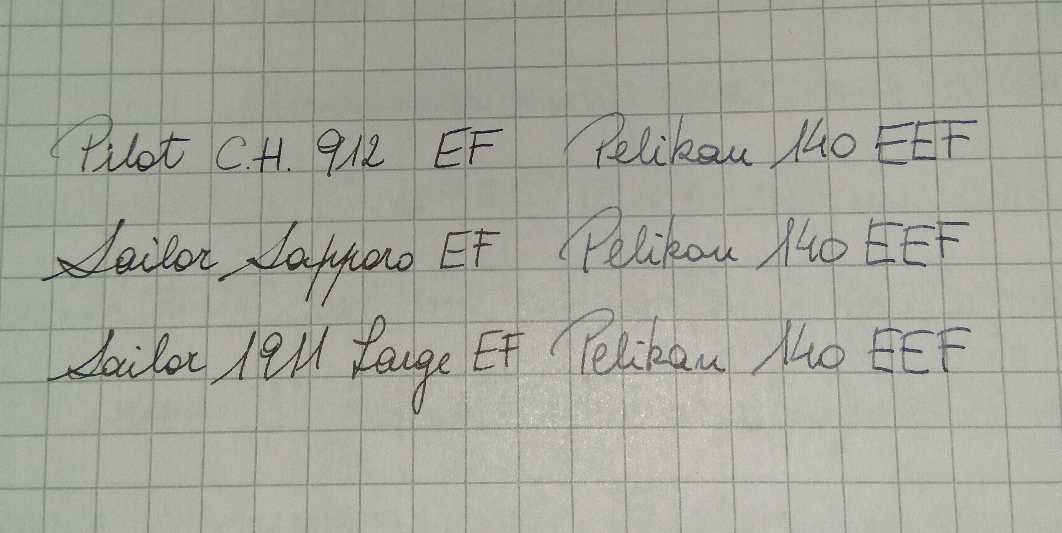 La M140 è una penna molto piccola, come la M200 moderna, che peraltro scrive molto fine, come si vede qui: