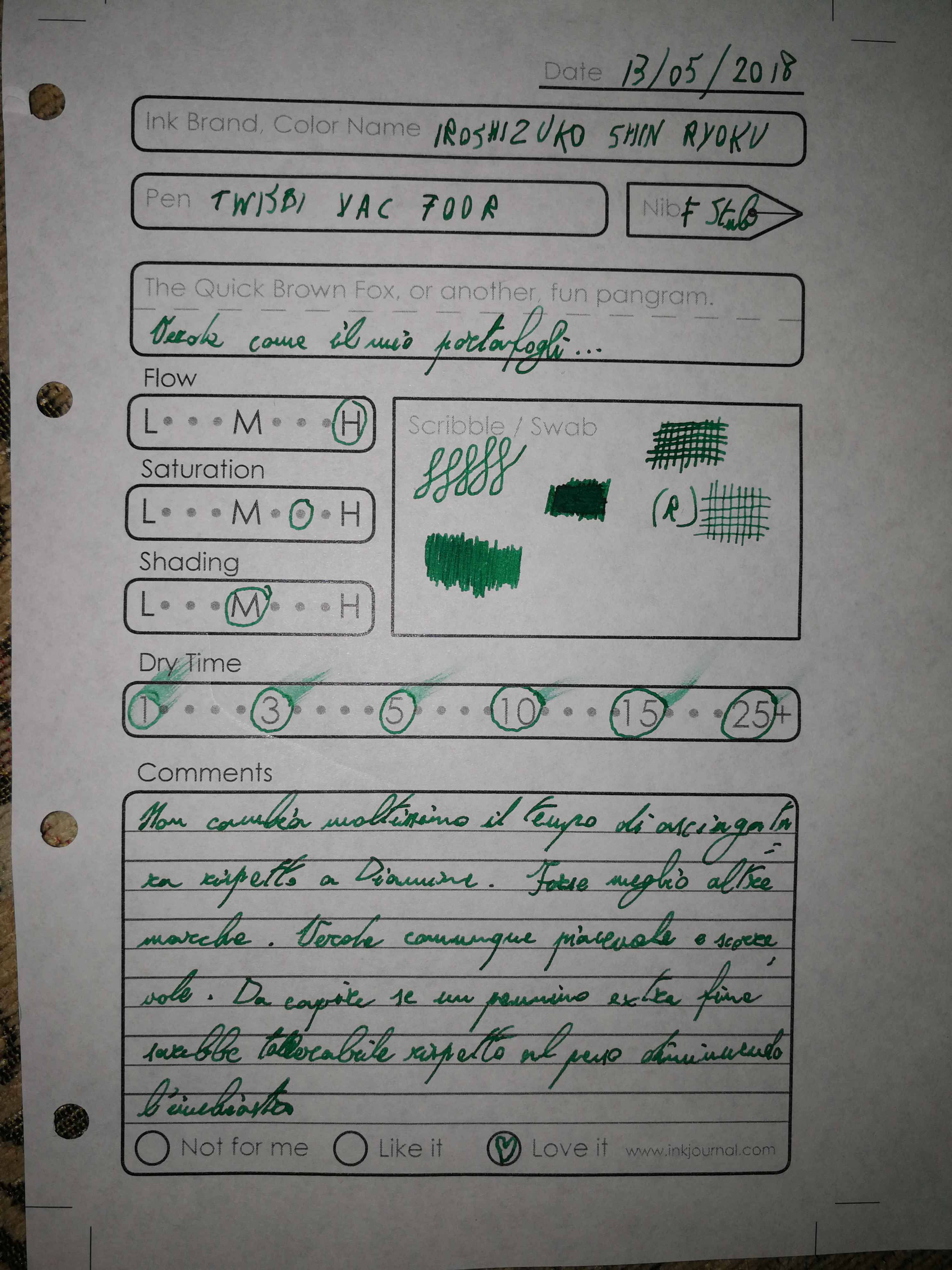 Ora... potrei tranquillamente caricare uno dei miei verdi nella prima giapponese che mi capita (Preppy comprese) e vivere felice ma, prima di buttare la penna nella scatole delle cianfrusaglie inutili di cui liberarsi alla prima occasione, vorrei giocare la carta dell'inchiostro.