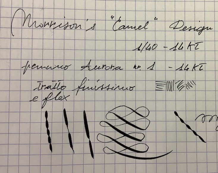 Si presenta davvero bene senza minimamente dimostrare di essere ormai una centenaria ; sfortunatamente - come nel caso di Miata - il pennino non è quello originale , ma fortunatamente è un pennino Aurora in oro di misura 1 con foro a goccia.