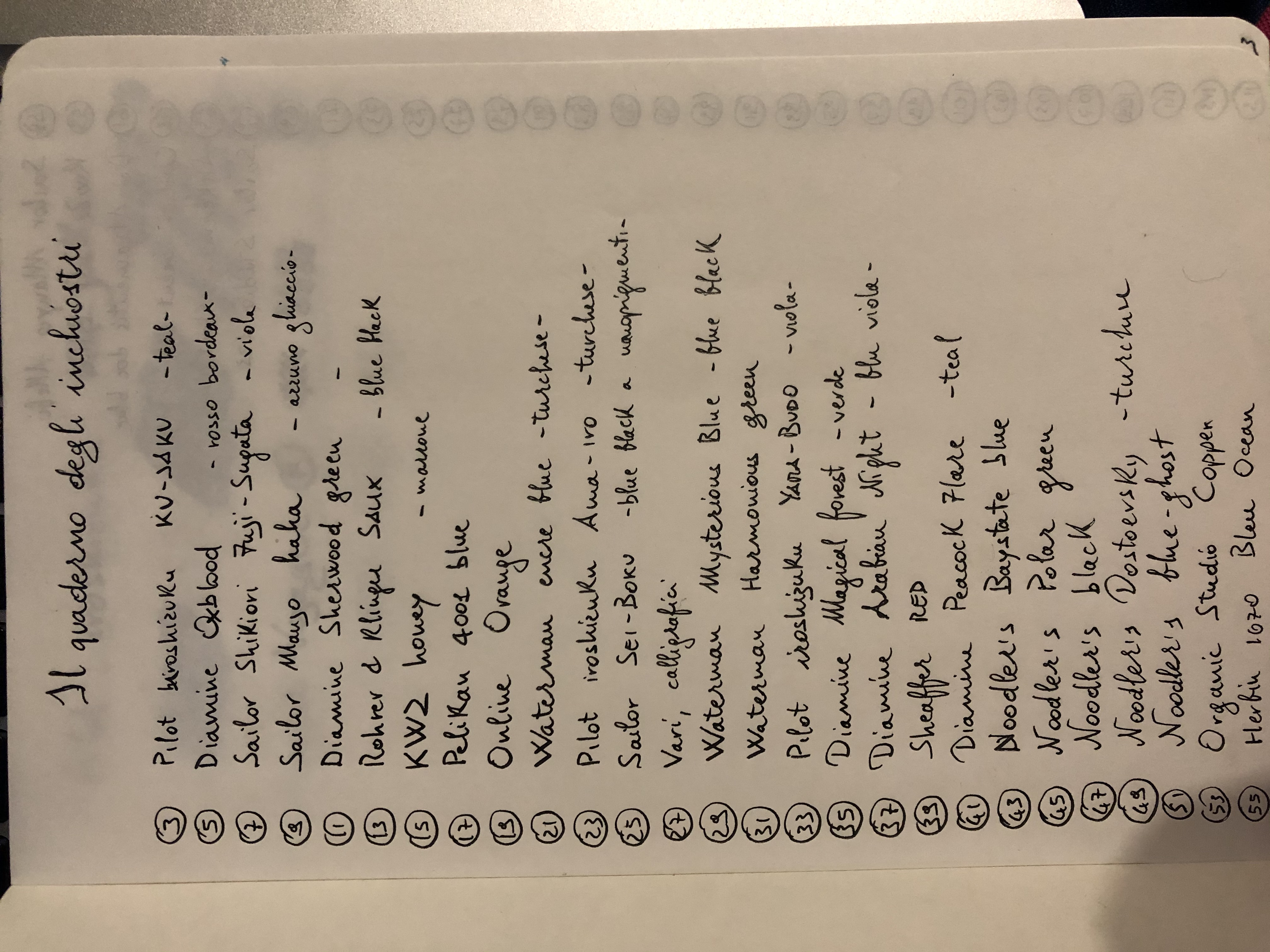 Ogni volta che provo una nuova accoppiata penna-inchiostro, scrivo qualche riga in un normale quaderno indicando: la penna, il pennino, l'inchiostro, eventuali impressioni e piacevolezza di scrittura. Uso solo una facciata dei fogli, perché è importante valutare anche quanto un inchiostro traspare.