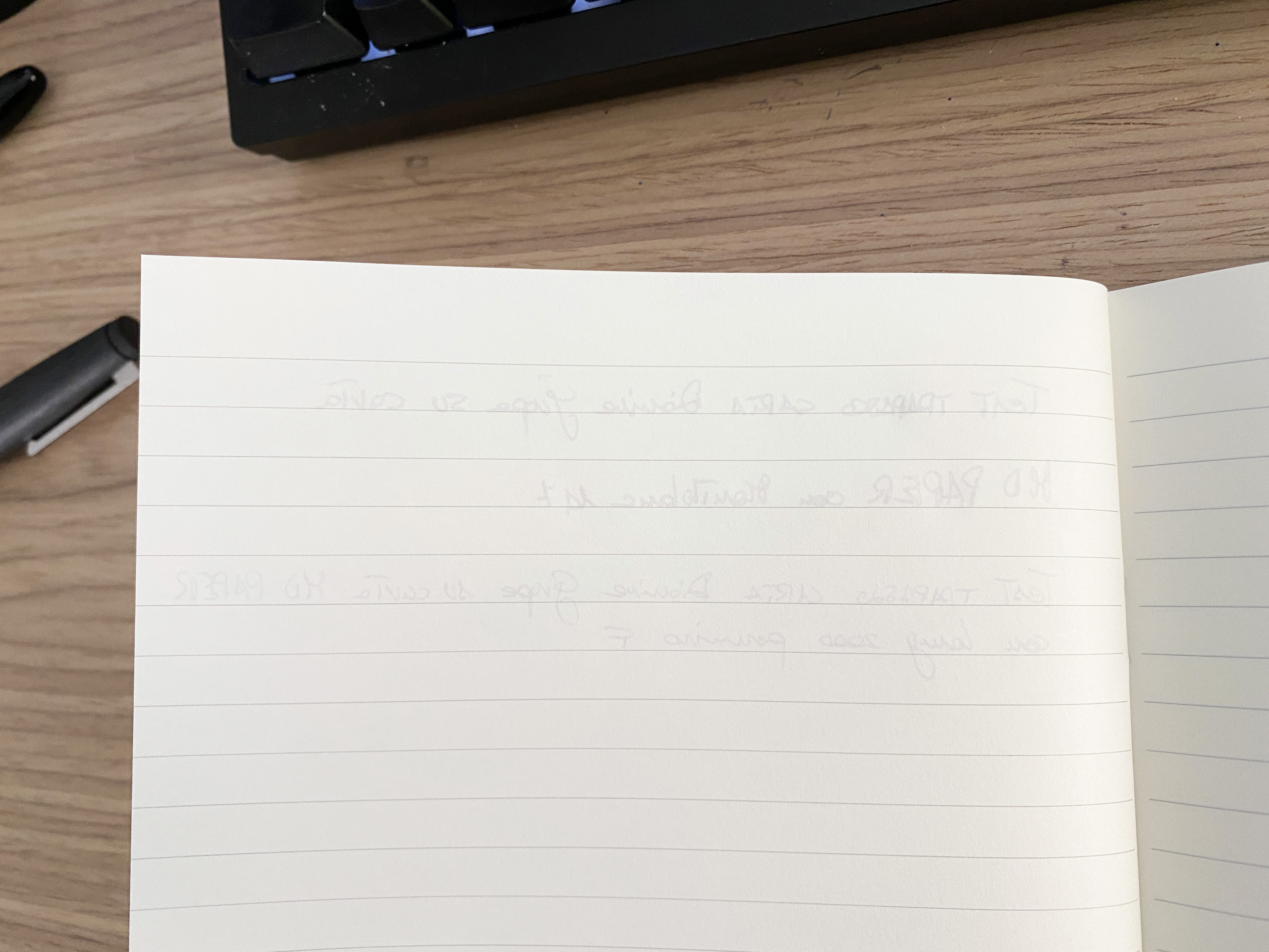 Terrei a puntualizzare, inoltre, che il BSB su pennino BB e carta pigna Architetto NON ha trapassato... il Grape sì!