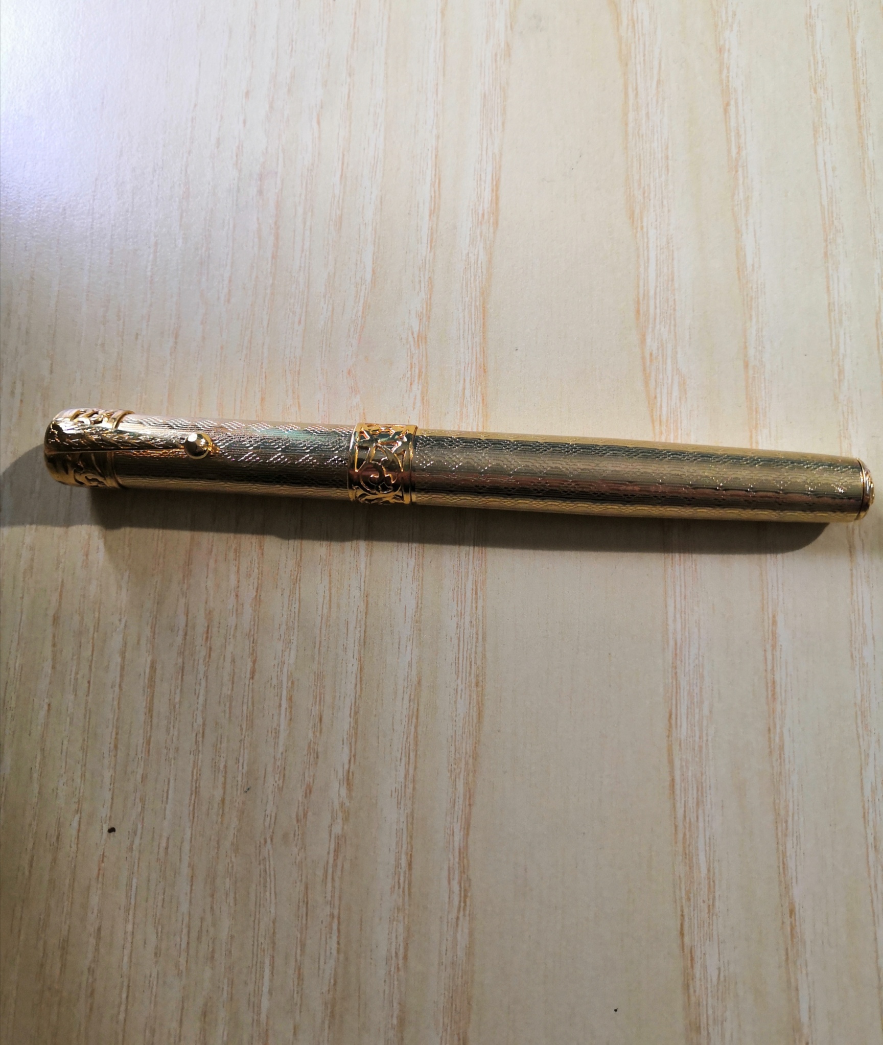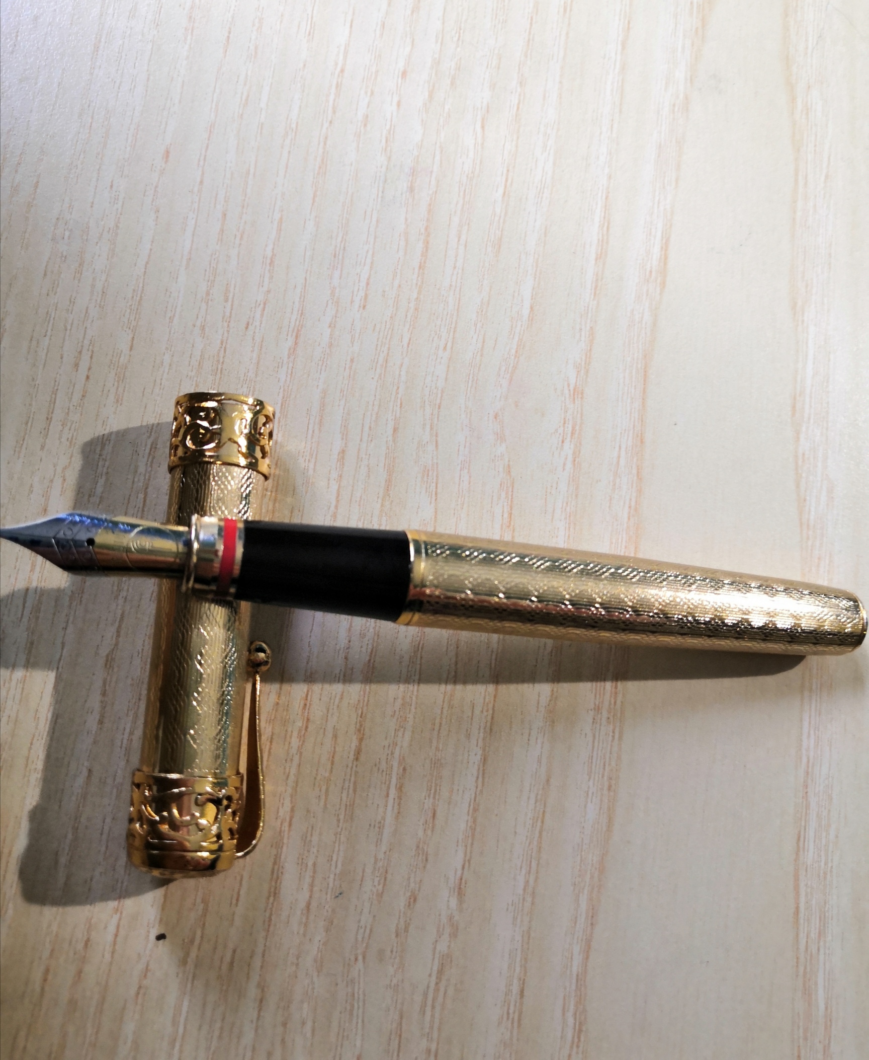 Alla fine presi anche io questa penna, insieme a un'altra Filcao che ribbattezzai Filcao Art Decò. La mia Royal scrive con un tratto medio e un flusso abbastanza generoso, ora è carica di Kon Peki