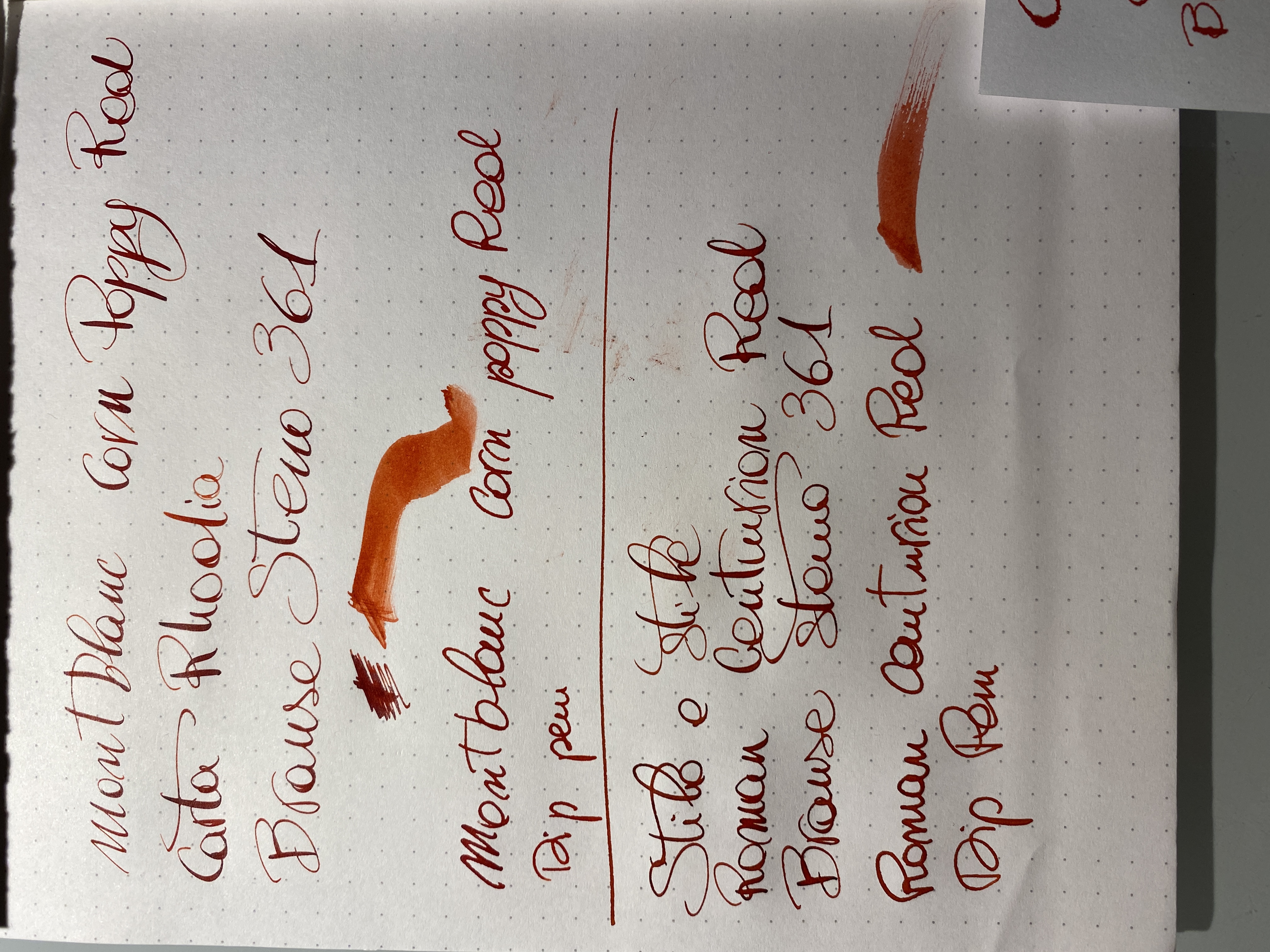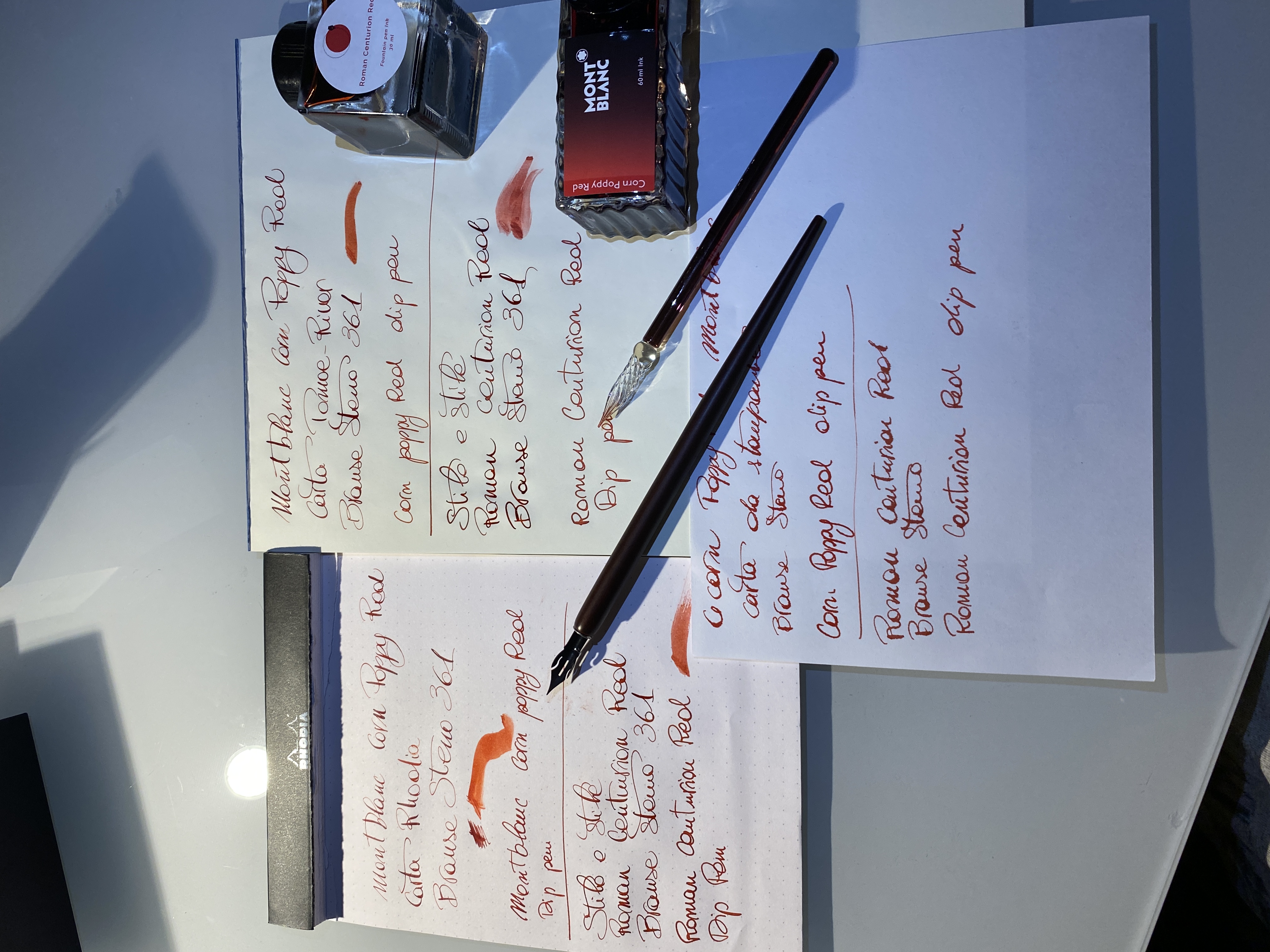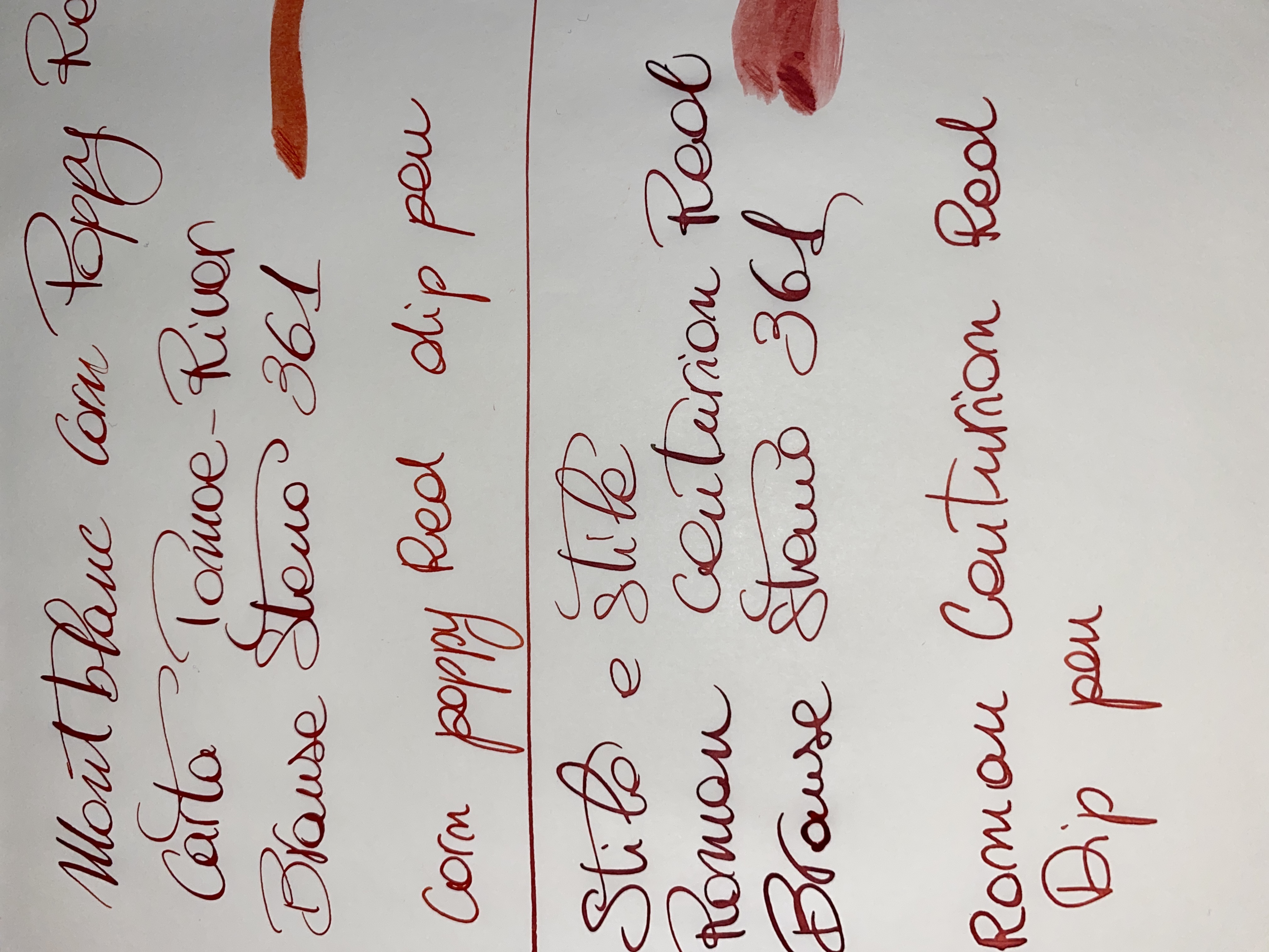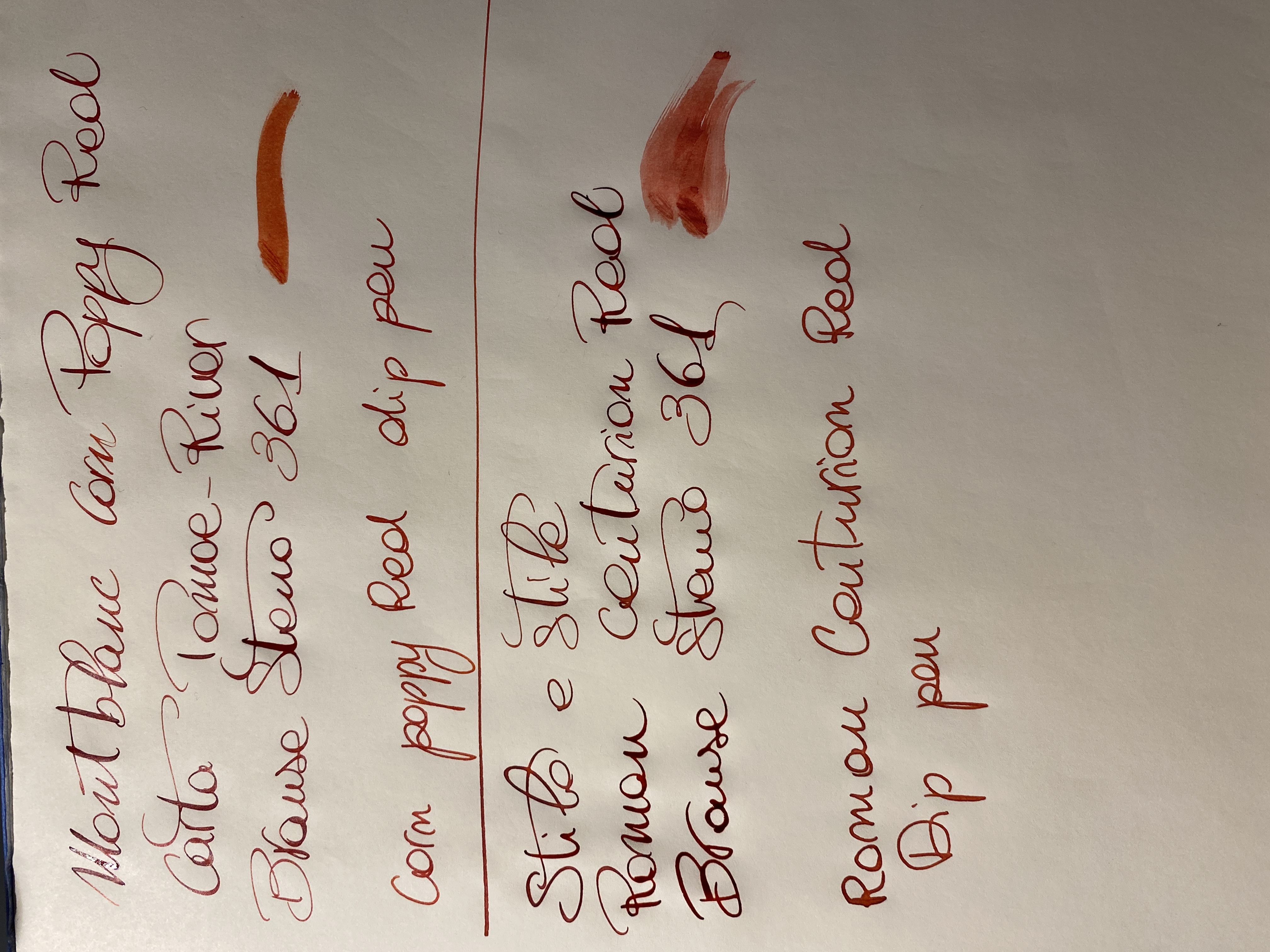 Ho fatto una prova al volo, onestamente a me piace più il roman centurion red del montblanc, dando però per assodato che sono molto simili, ma con il pennino preferivo per l’appunto l’inchiostro romano