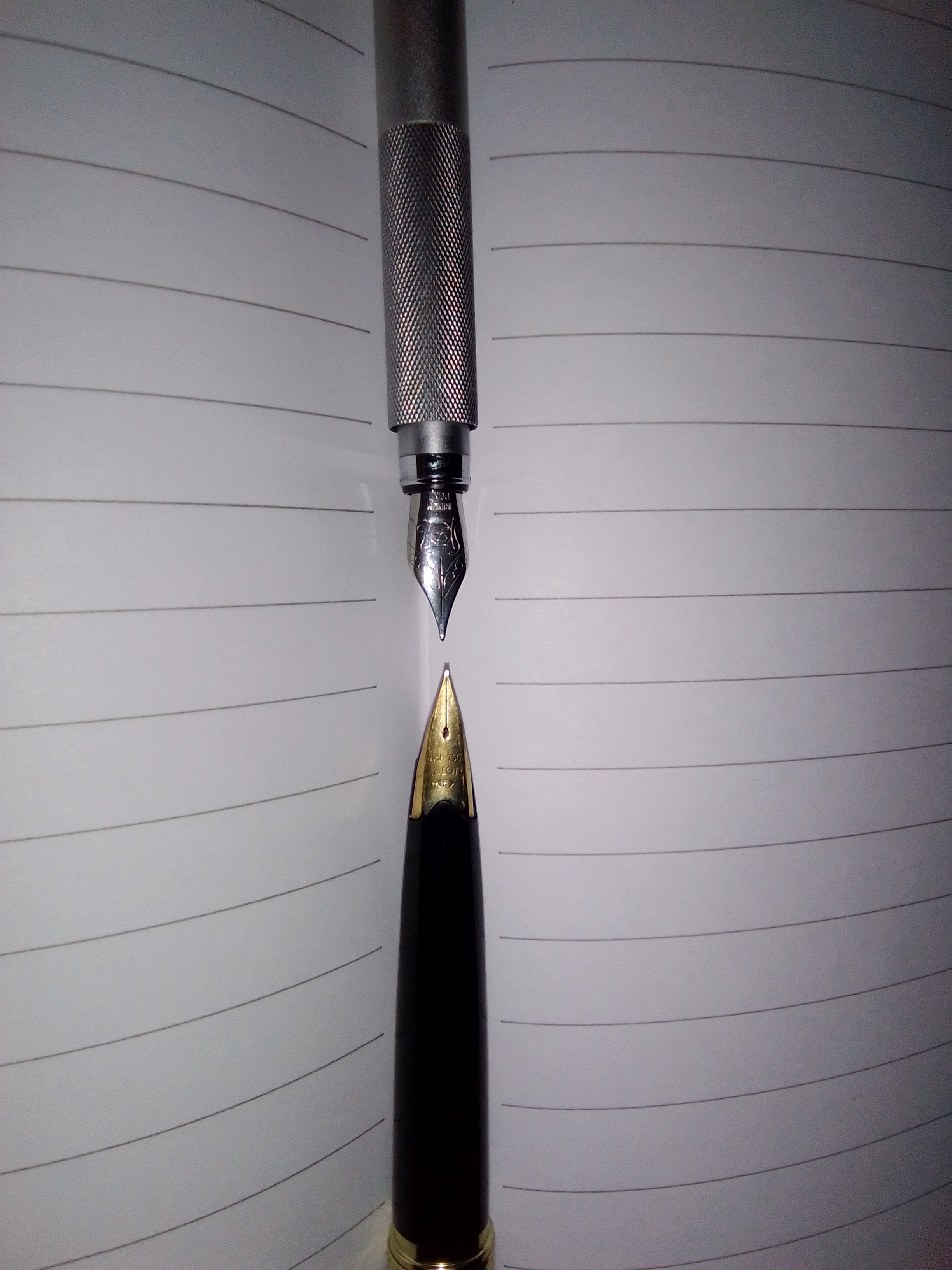 La stilografica Muji (é ła marca? É il modello? Boh!), ha pennino F (unico disponibile che io sappia) e corpo completamente in alluminio. Dall'aspetto superminimale CUT...