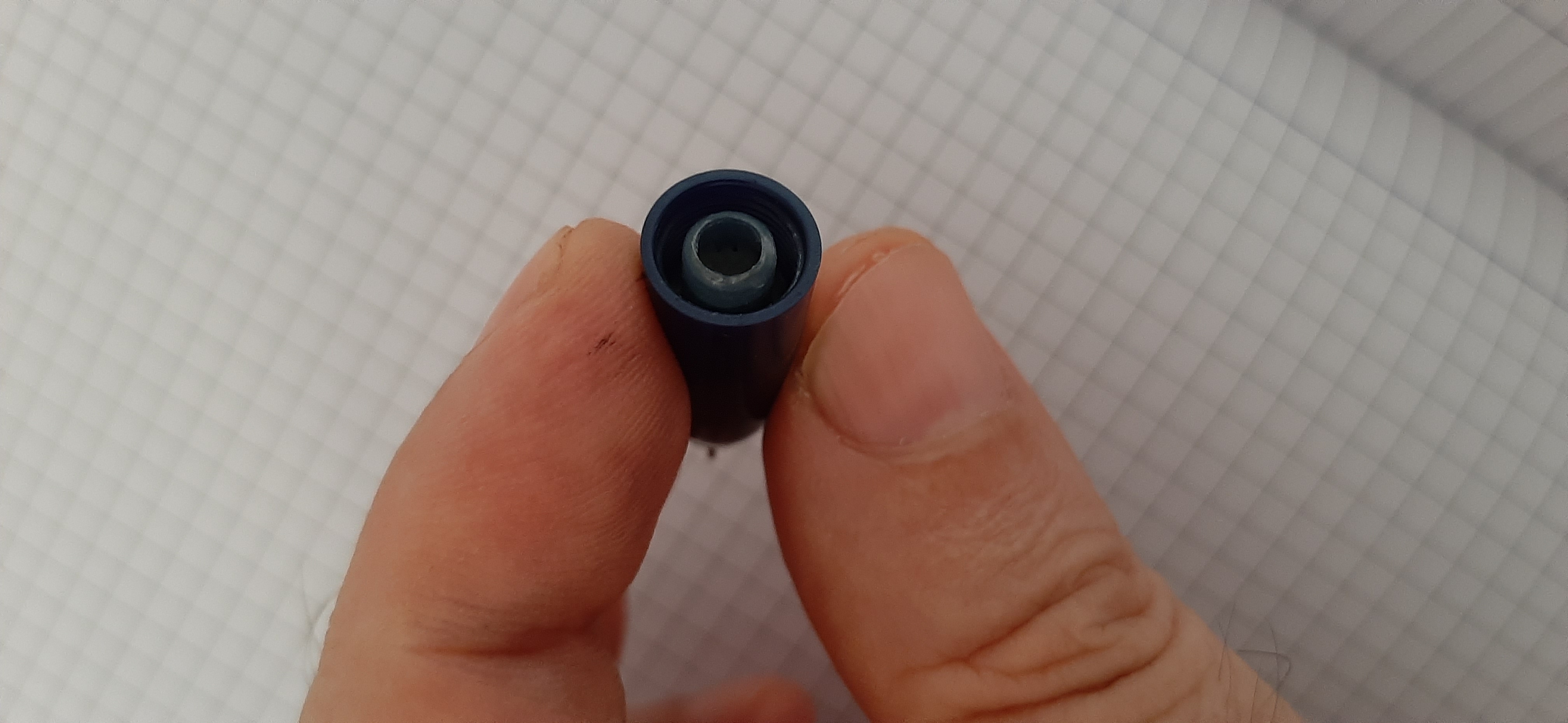 2) deve quindi essere a pressione e viene da pensare che il foro di uscita debba essere tale da dover contenere il pennino - alimentatore e quindi che la strada per smontarlo sia quella inversa ( cioè spingerlo da fuori verso il dentro della penna)